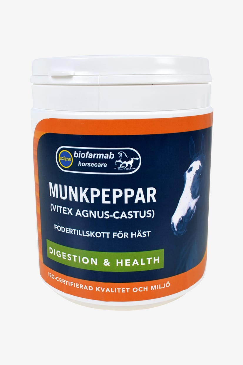 Eclipse Biofarmabs Munkpeppar ska ges dagligen under hela våren och sommaren och kan ökas, exempelvis i samband med stoets brunstcykel. Om behövligt, kan dock Munkpeppar användas året runt. Fungerar även utmärkt till hingstar eller valacker med ”hingstigt” beteende.