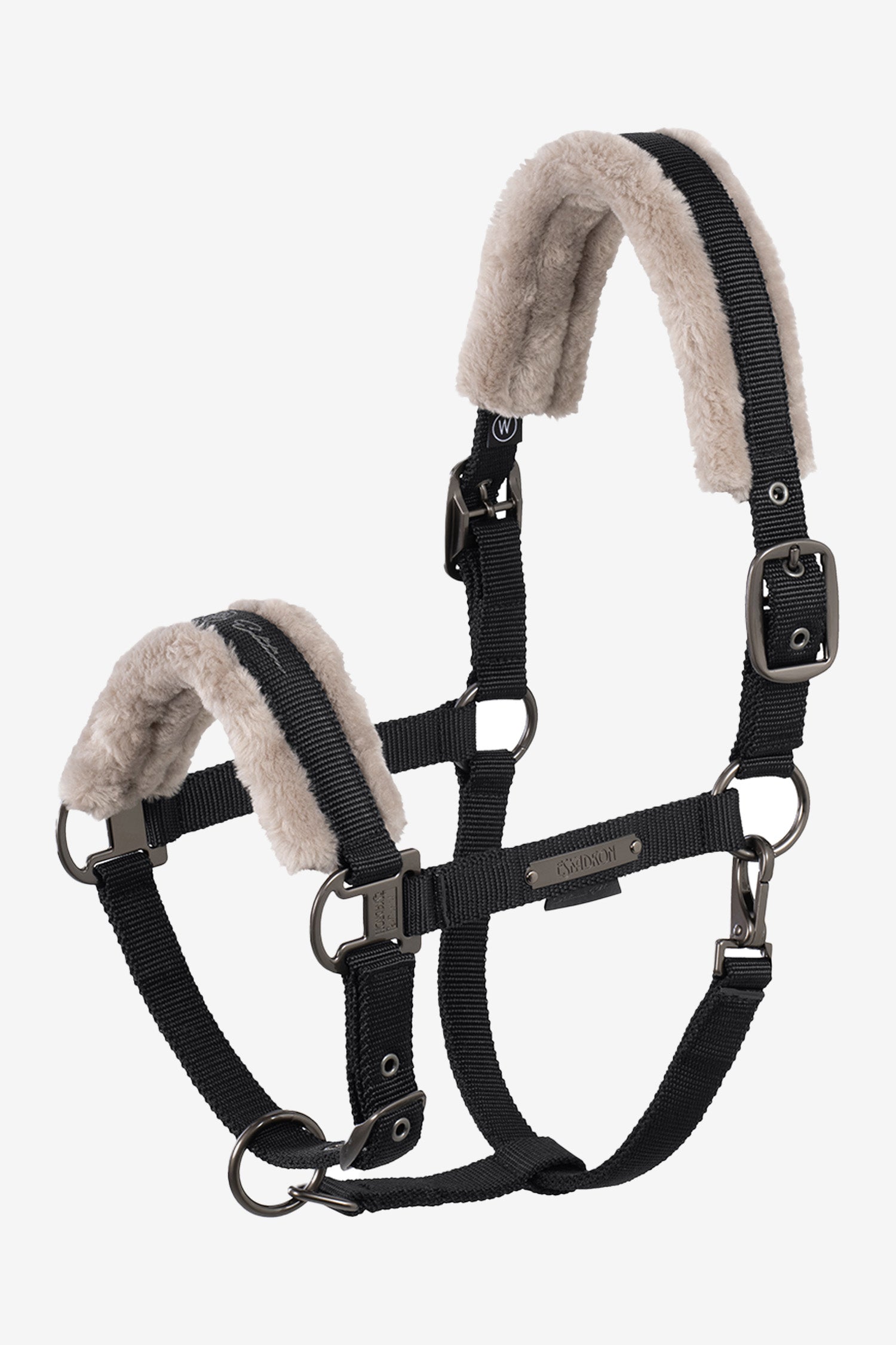 Het halster is gevoerd met superzacht, synthetisch imitatiebont op het kopstuk, de bakstukken en de neusriem – perfect voor gevoelige paarden of paarden die snel schuurplekken krijgen. De brede, robuuste banden van duurzaam webbing zijn zowel verstelbaar als slijtvast, terwijl de elegante Platinum-details zorgen voor een stijlvolle uitstraling.