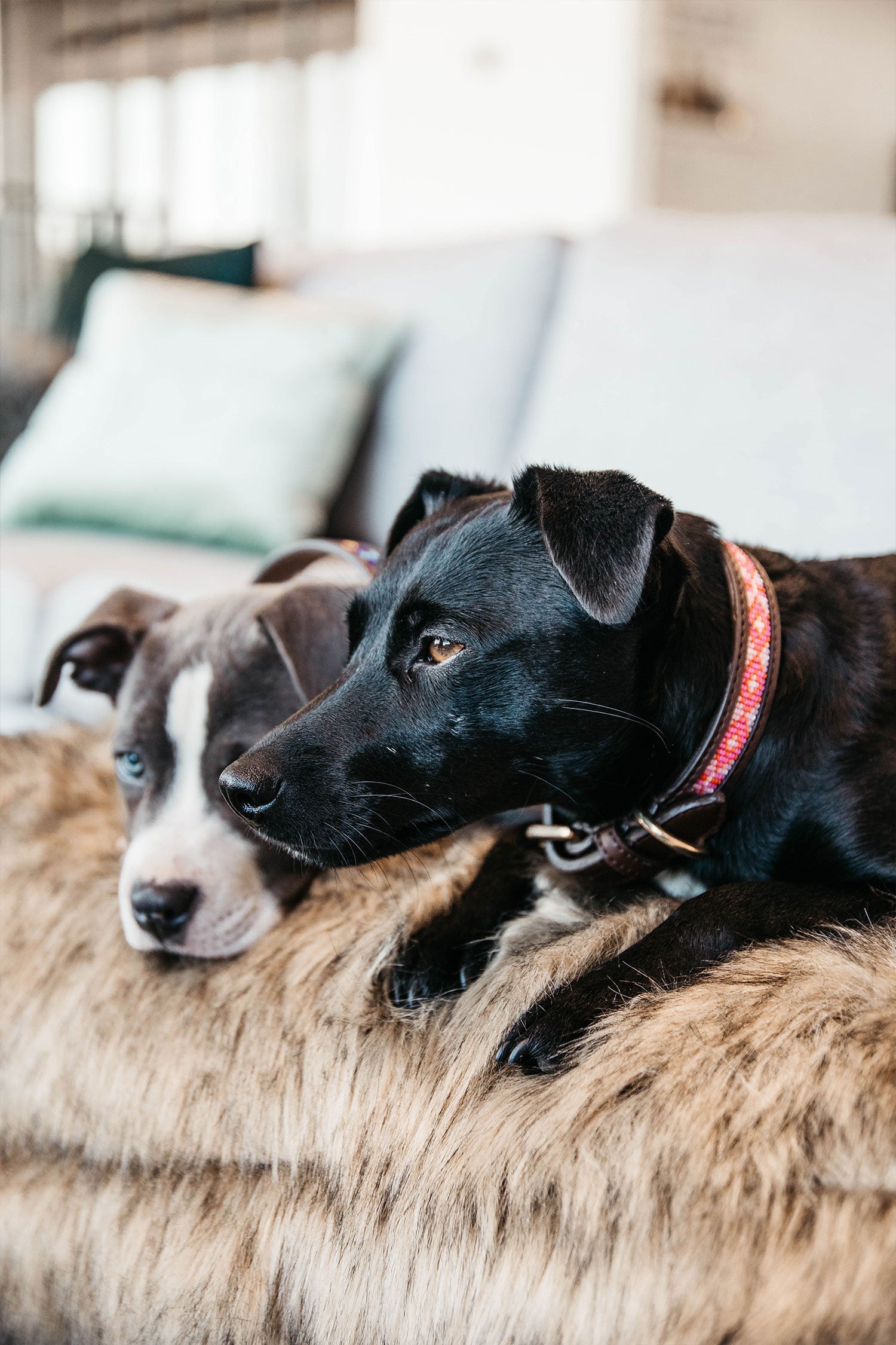 De halsband heeft een bevestigingslus en een ring om de lijn aan vast te maken.