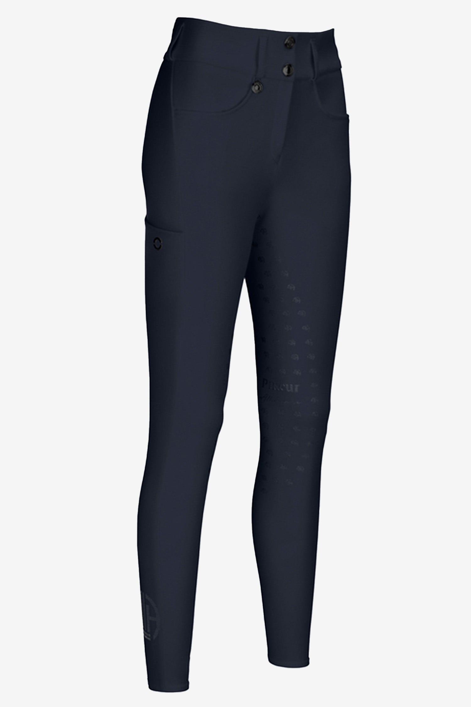 De broek heeft stijlvolle screenprint-panelen in Pikeur Athleisure-design en een brede tailleband van de buitenstof die zorgt voor een veilige en stabiele pasvorm. De tailleband sluit met twee knopen voor extra comfort en ondersteuning.