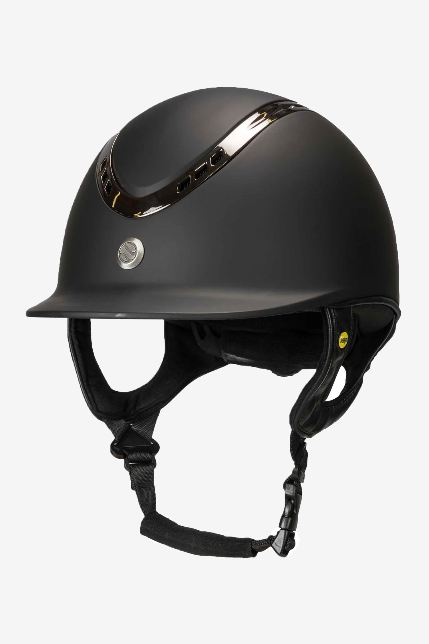 De EQ3 Pardus+ screw Smooth top is een elegante rijhelm met een slank design en een zwart matglanzend oppervlak. De ventilatiegaten dienen zowel als decoratief detail als voor een goede ademendheid van de helm.