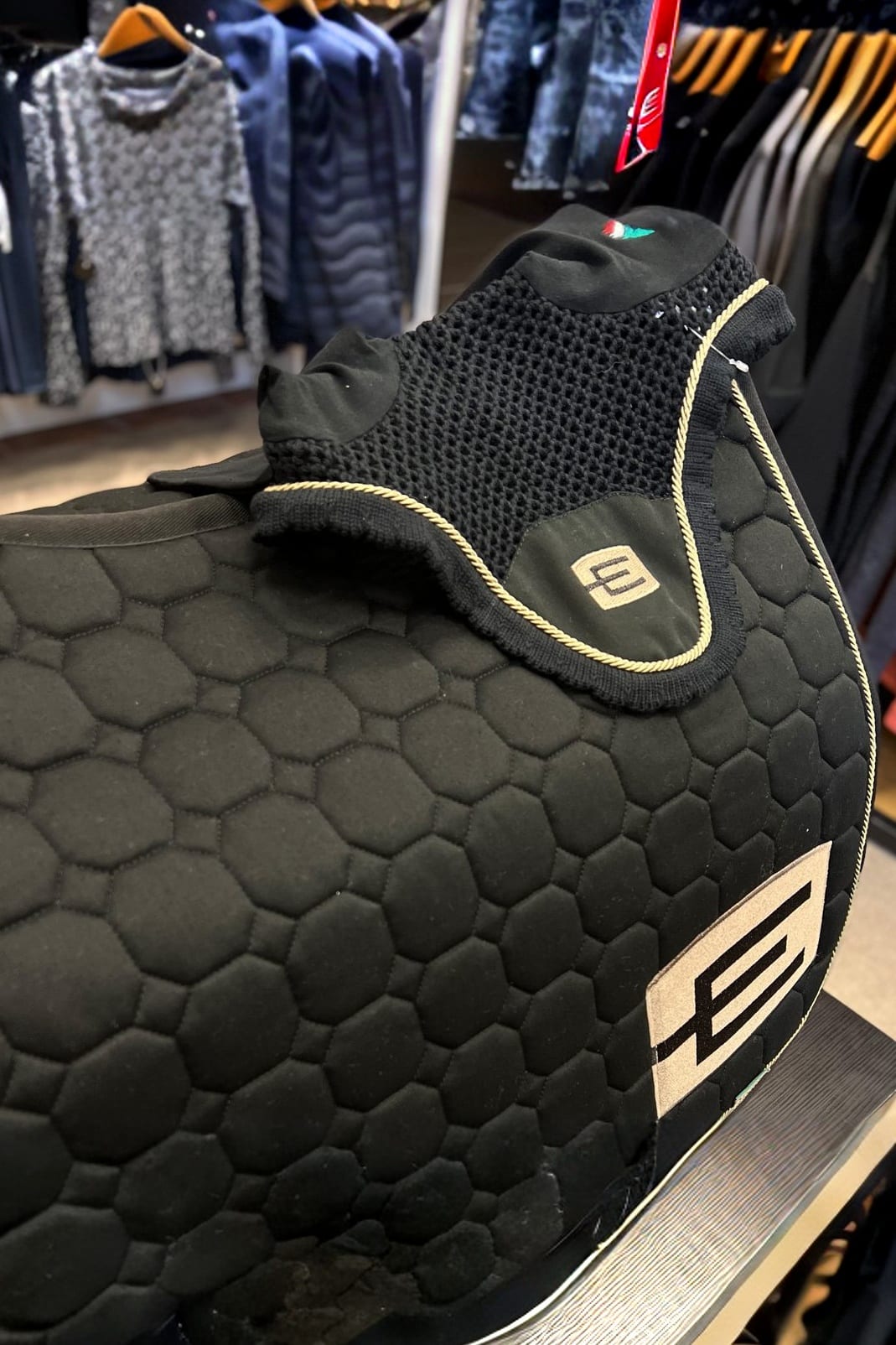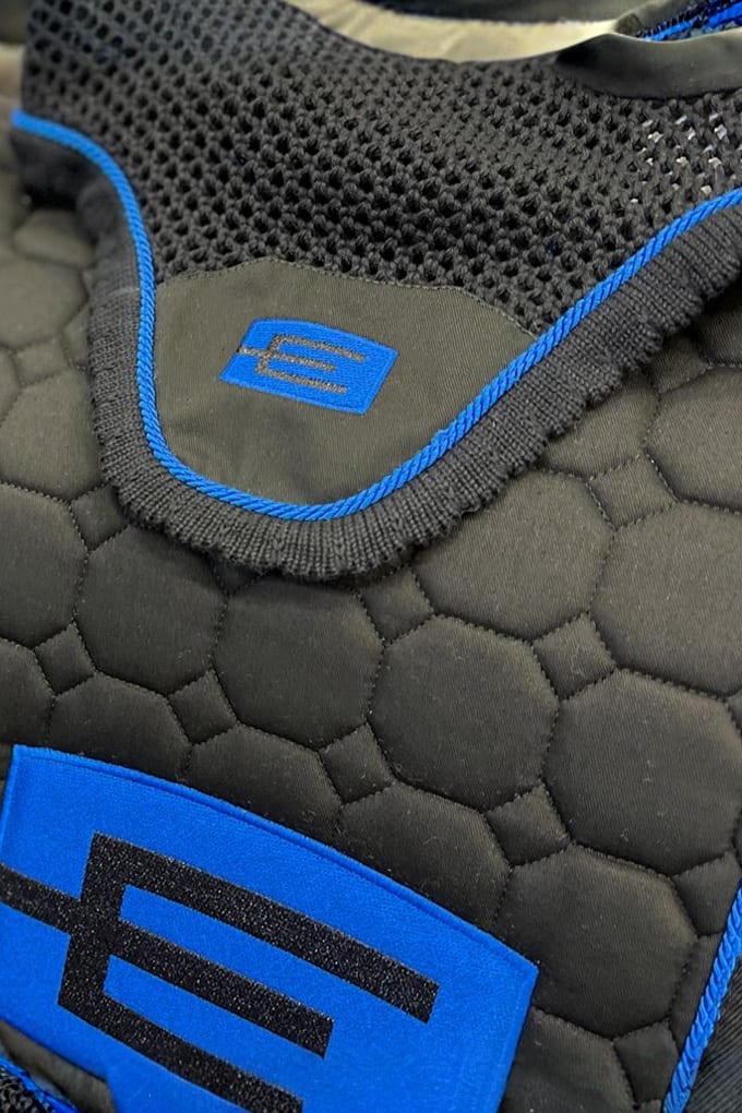 Octagon-quiltat schabrak i allergivänlig och antikrymp-behandlad bomull med insida i extra mjuk bomull. Insidan är i ofärgad ecru för att förhindra att färgnings-substanser kommer i kontakt med hästen.