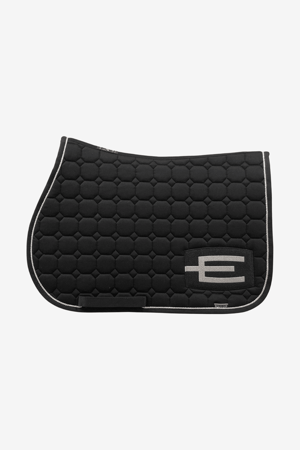 Hoppschabrak i svart med en tunn silverglittrig passpoal 3 mm och den populära E-loggan i svart-silver på vänster sidan.