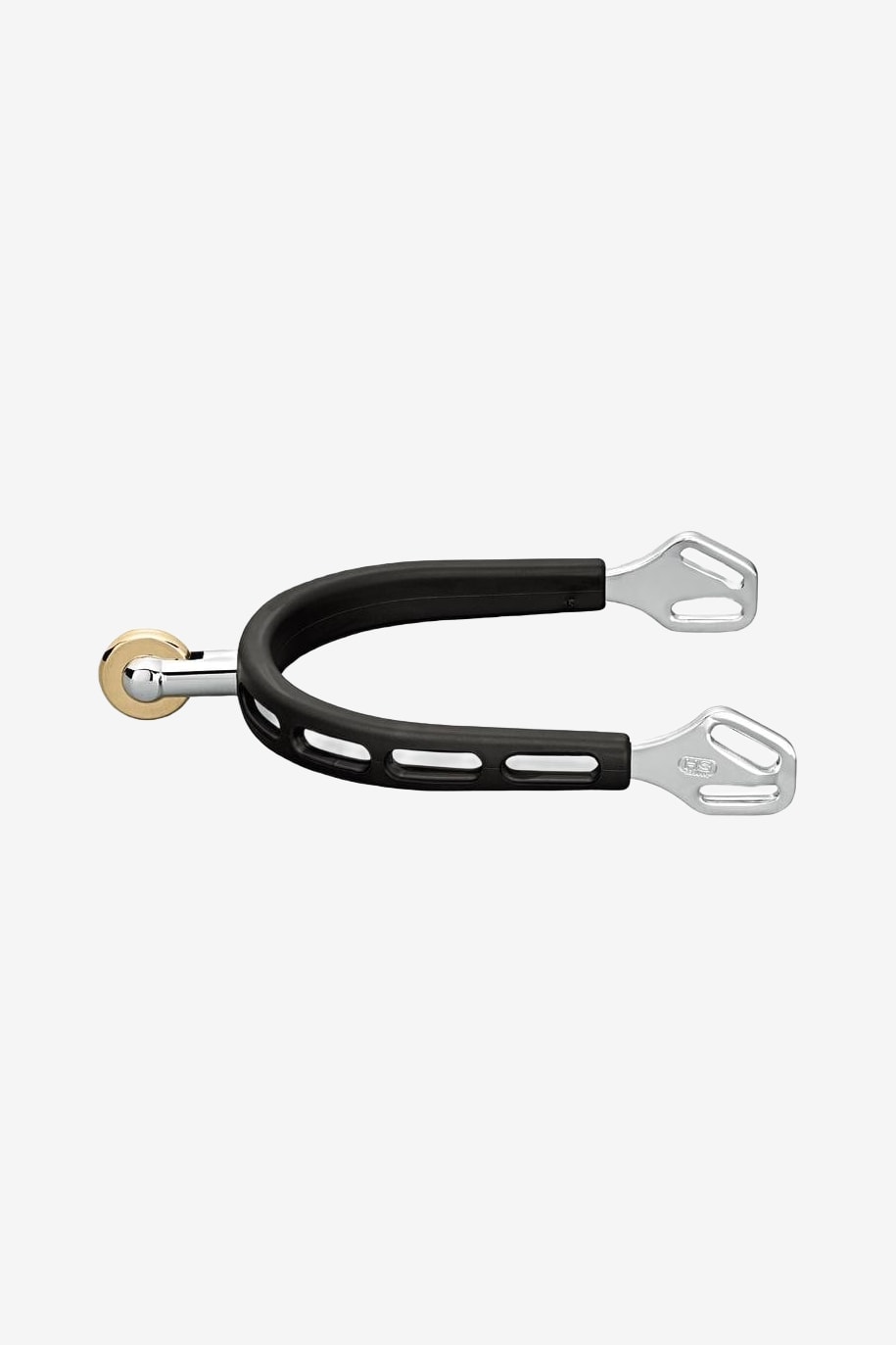 Mjuk gummi som gör att sporren hålls på plats och skyddar mot både onödigt tryck och slitage på stövlarna.