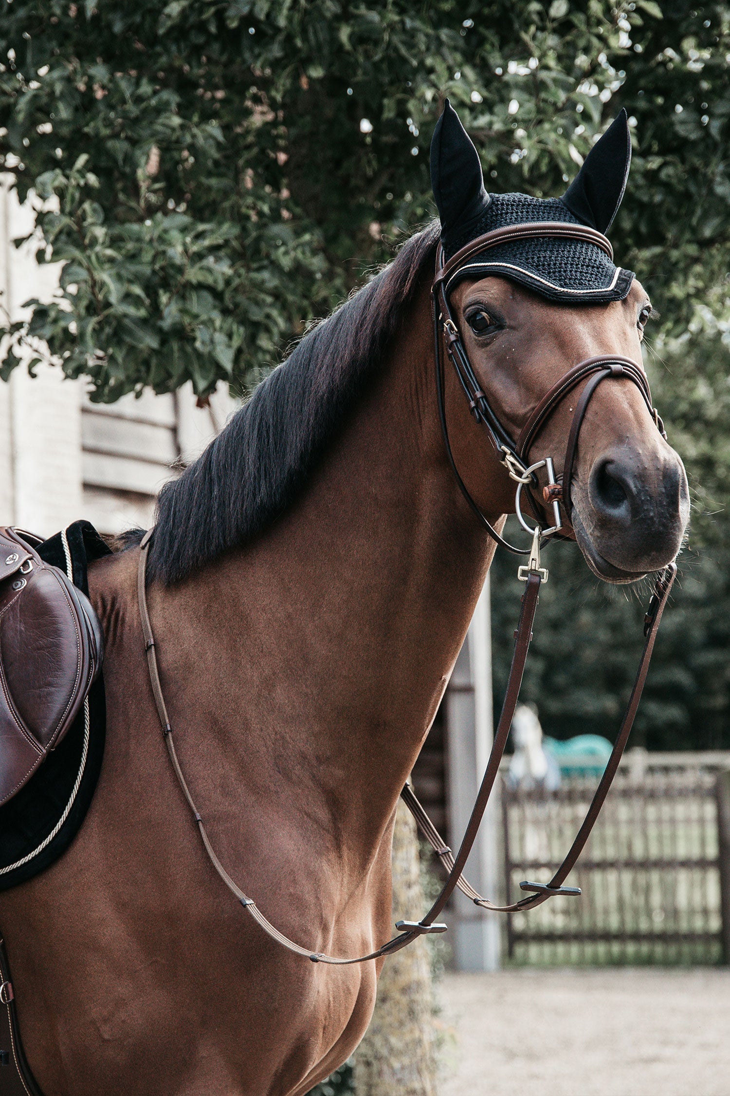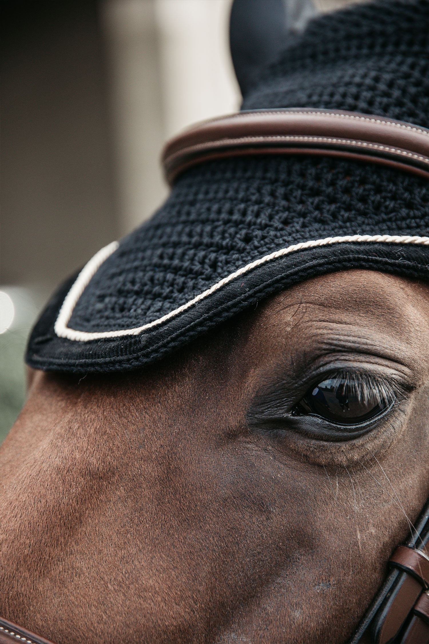 • Vliegenbescherming tegen vervelende insecten bij de oren van het paard.