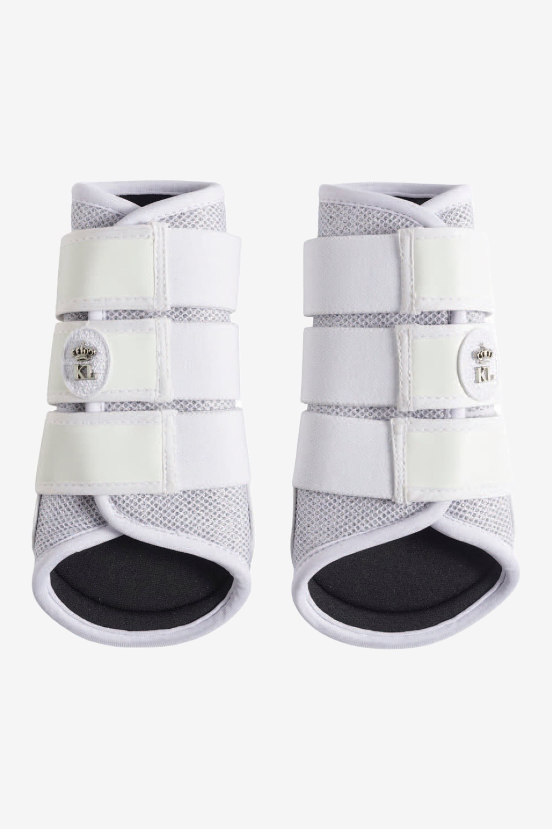 Met een witte basis en mesh-materiaal met glitteraccenten vallen deze boots op in de menigte. Zacht neopreen tegen het paard zorgt voor veel comfort en schokabsorptie. Bevestigd met sterke klittenbandsluitingen en afgewerkt met een stijlvol KL-logo. Per paar verkocht.