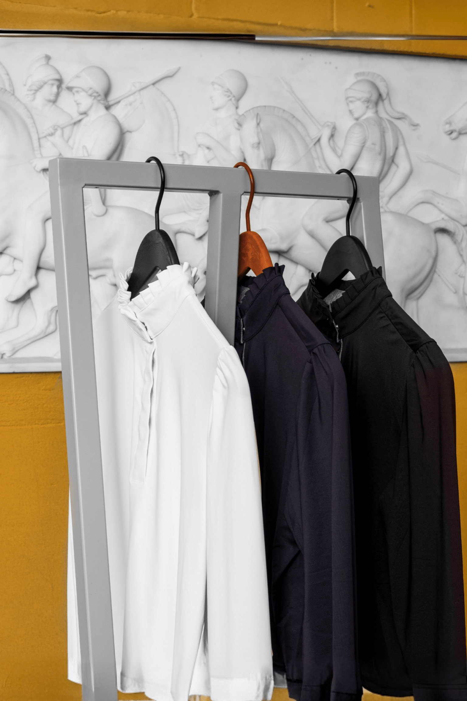 Met zijn romantische pofmouwen en geplooide kraag geeft dit shirt een elegante en subtiele uitstraling. Het zachte jerseymateriaal garandeert comfort en draagbaarheid voor dagelijkse ritten en trainingen.