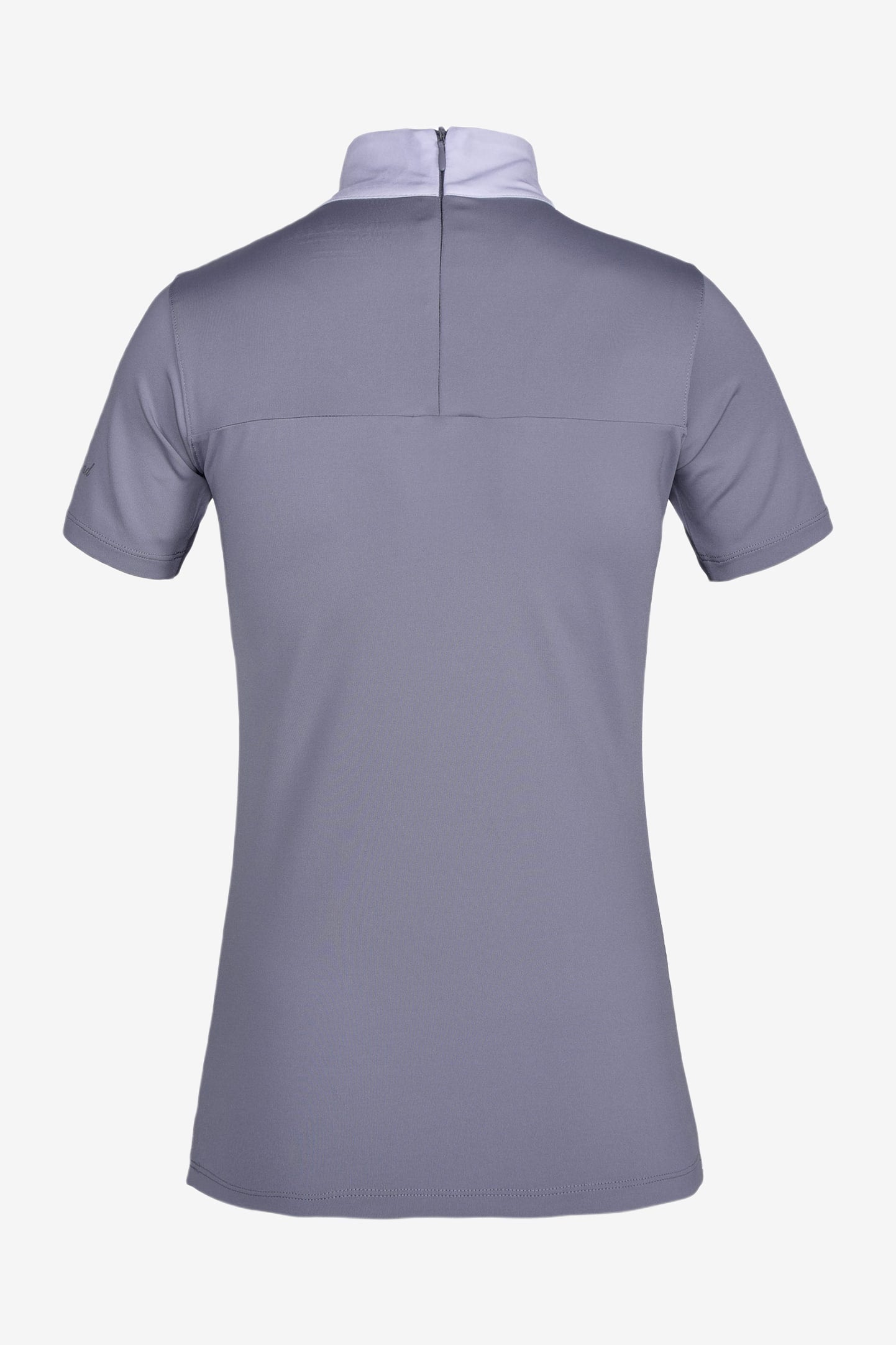 Tävlingspiké till dam i funktionsmaterial från Kingsland. Kljanessa har material med hög andningsförmåga, är snabbtorkande och med god fukthantering. Öppnas och knäpps med dold dragkedja i ryggen. Strassdekorationer och tryckt logotyp i glitter på ärmar och krage.