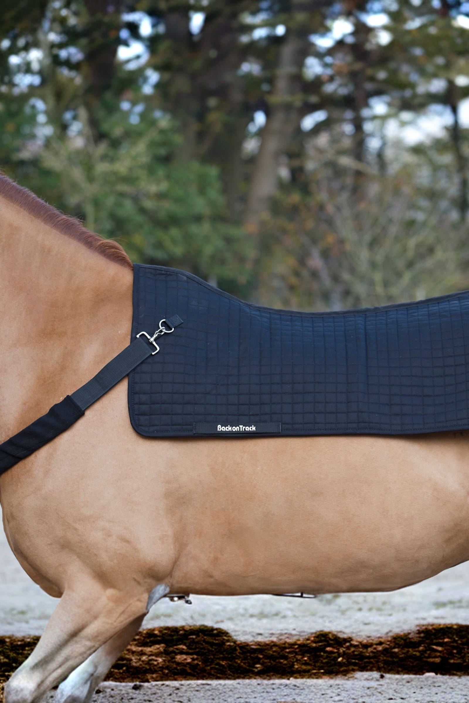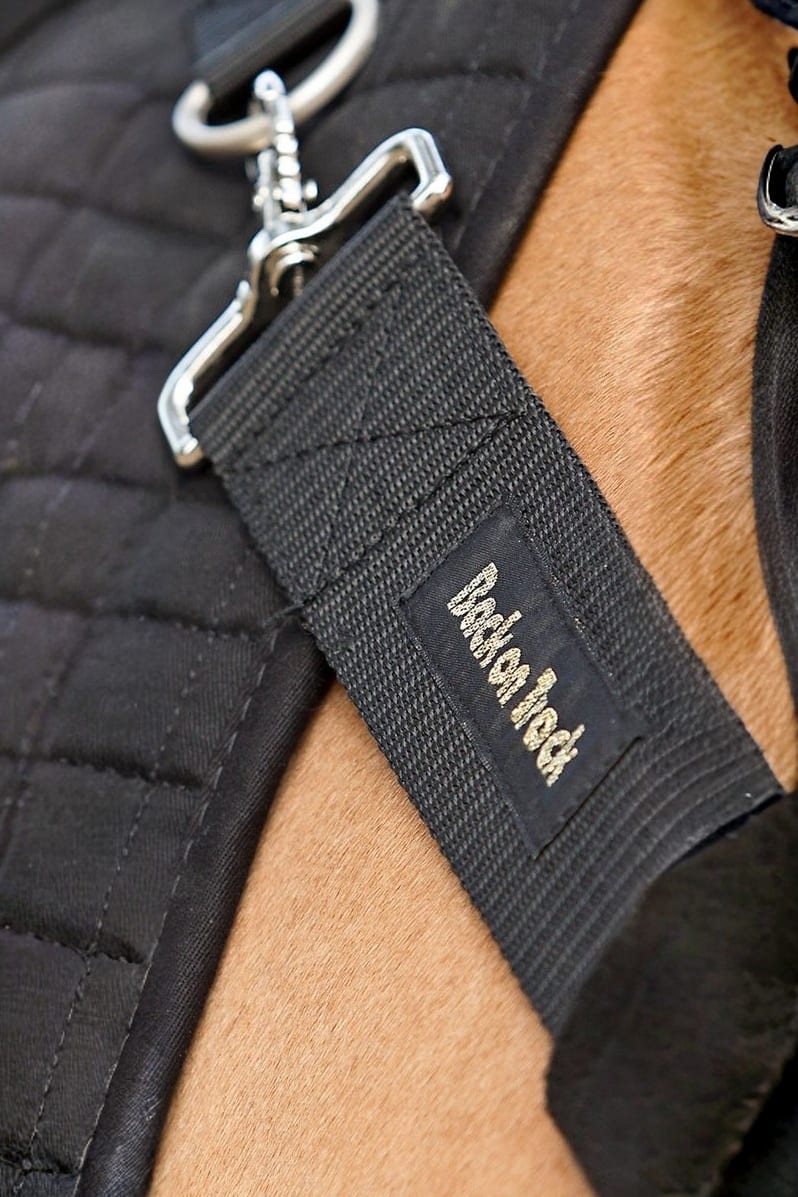 Napierśnik jest uzupełnieniem do ogrzewacza grzbietu Back On Track. Zapobiega przesuwaniu się ogrzewacza do tyłu podczas ruchu konia, zapewniając, że pozostaje on na swoim miejscu. Warstwa miękkiego polaru zapewnia komfort i zmniejsza ryzyko obtarć.