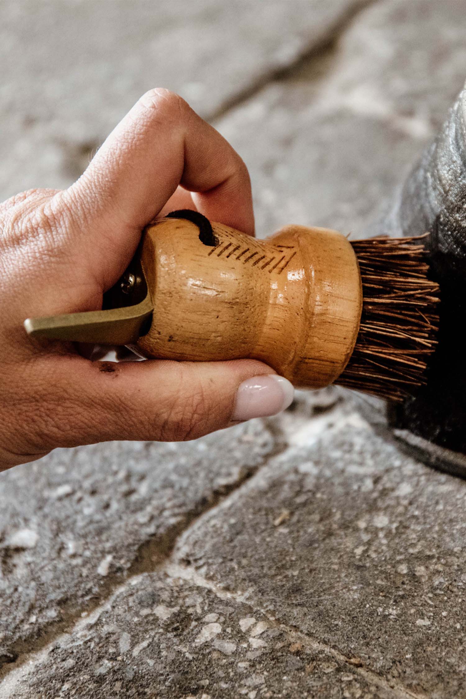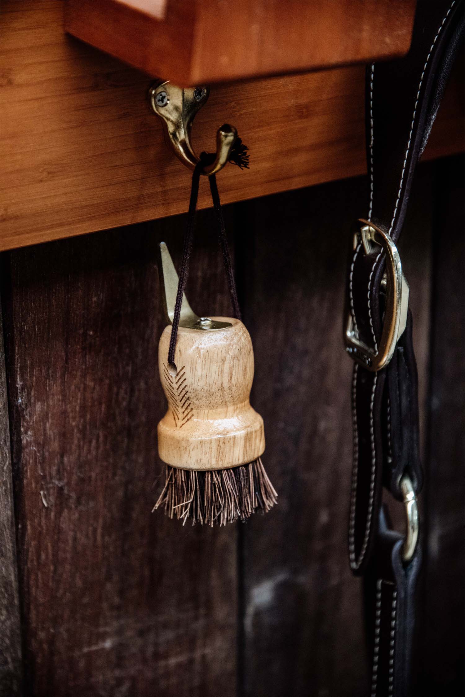 Wykonana z lakierowanego drewna kauczukowego dla dobrej trwałości. Szczotka wykonana z włókna polipropylenowego. Twarda i wytrzymała szczotka do łatwego usuwania brudu. Kopystka posiada również mały sznurek, dzięki któremu można ją łatwo powiesić w pobliżu.