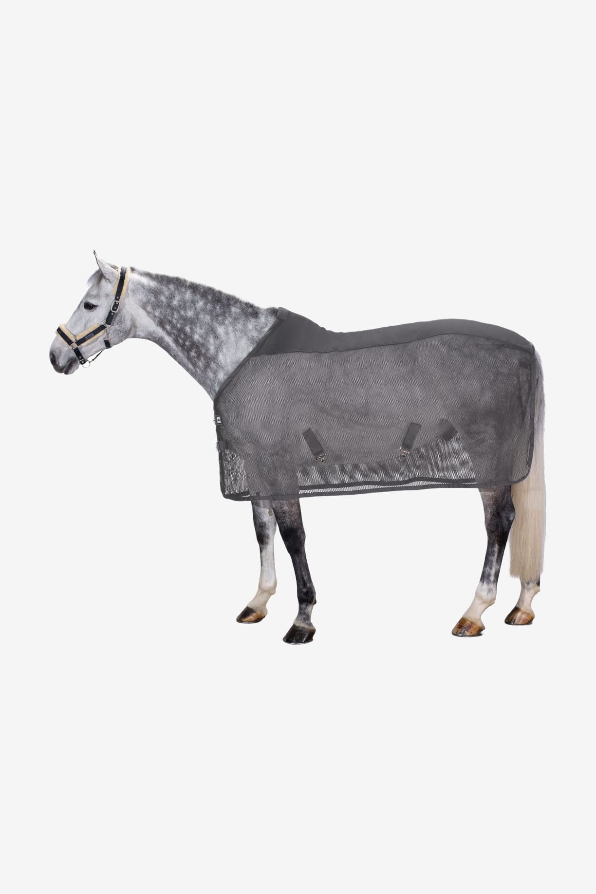 Ta wysokiej jakości derka siatkowa skutecznie odprowadza wilgoć z ciała konia i utrzymuje ciepło, umożliwiając stopniową regenerację po treningu lub kąpieli.