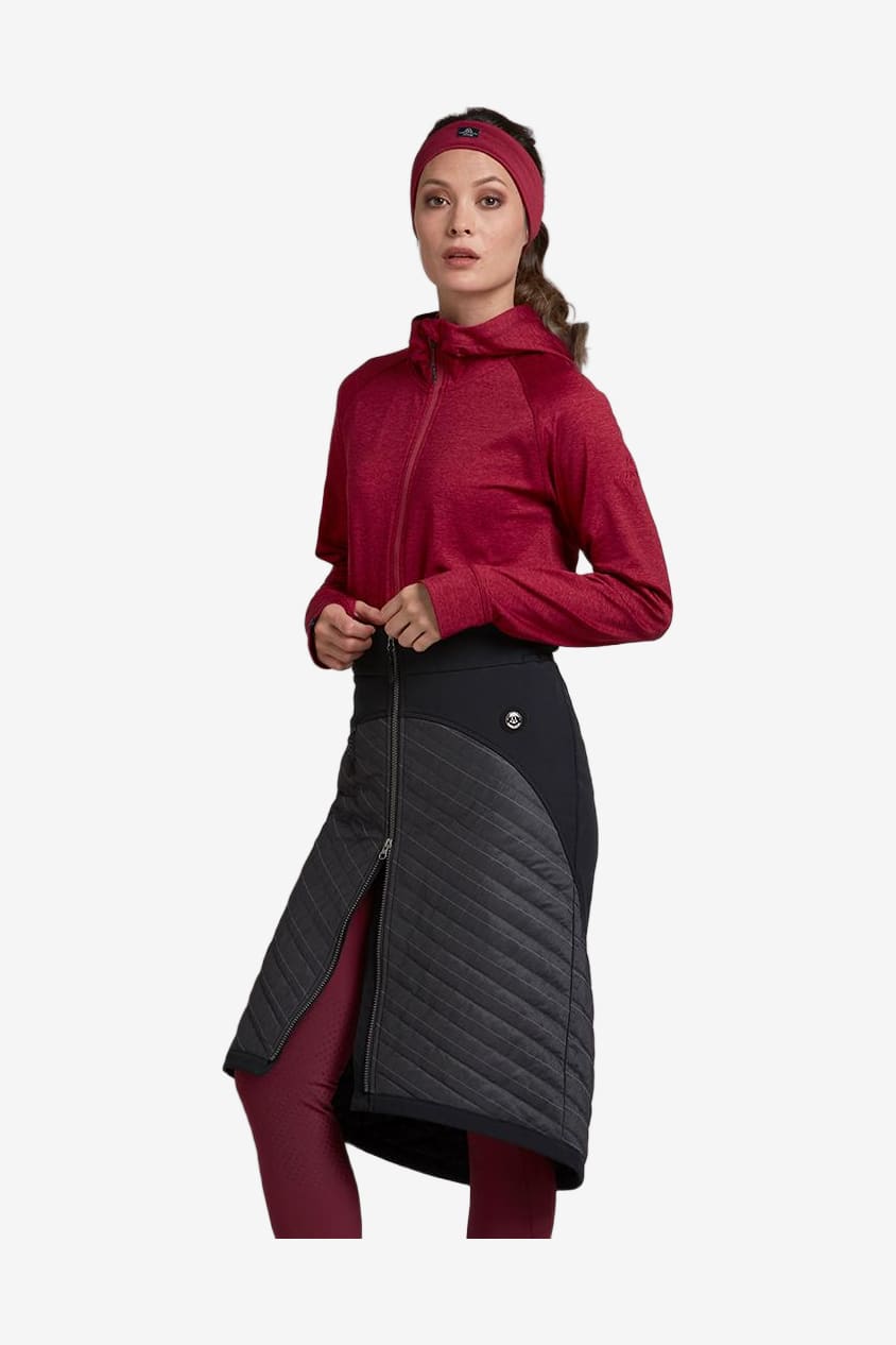 Ta spódnica posiada odblaskową powierzchnię z przodu i z tyłu. Techfleece na częściach, które nie są pikowane materiałem odblaskowym. Cała spódnica jest wiatro- i wodoodporna (nie wodoodporna). Regulowany pas dla najlepszego dopasowania. Dwukierunkowy zamek z przodu oraz długi zamek z tyłu umożliwiają łatwe użytkowanie nawet podczas jazdy. Przednia kieszeń na zamek do przechowywania wartościowych przedmiotów.