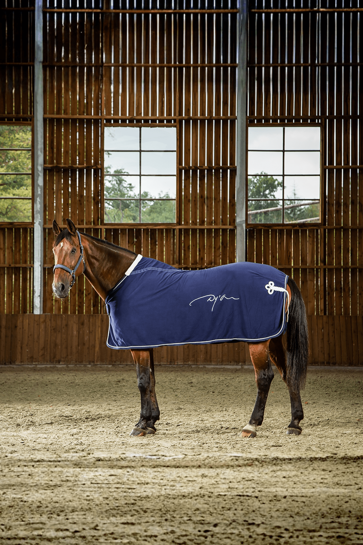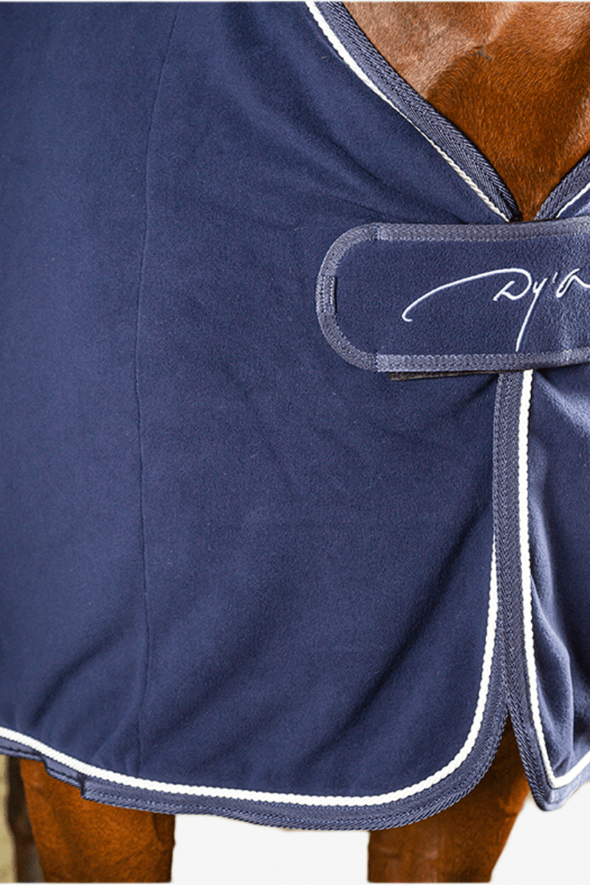 Bardzo ładny koc polarowy od Dyon. Koc wykonany jest z polaru, który został poddany obróbce zapobiegającej elektryzowaniu się. Z tyłu znajduje się pięknie pleciona ozdoba na biodrach, a z przodu zapięcie na rzep. W okolicy kłębu wszyty jest klin w kształcie litery V, który zapewnia idealne dopasowanie koca do konia bez zbędnego ucisku.