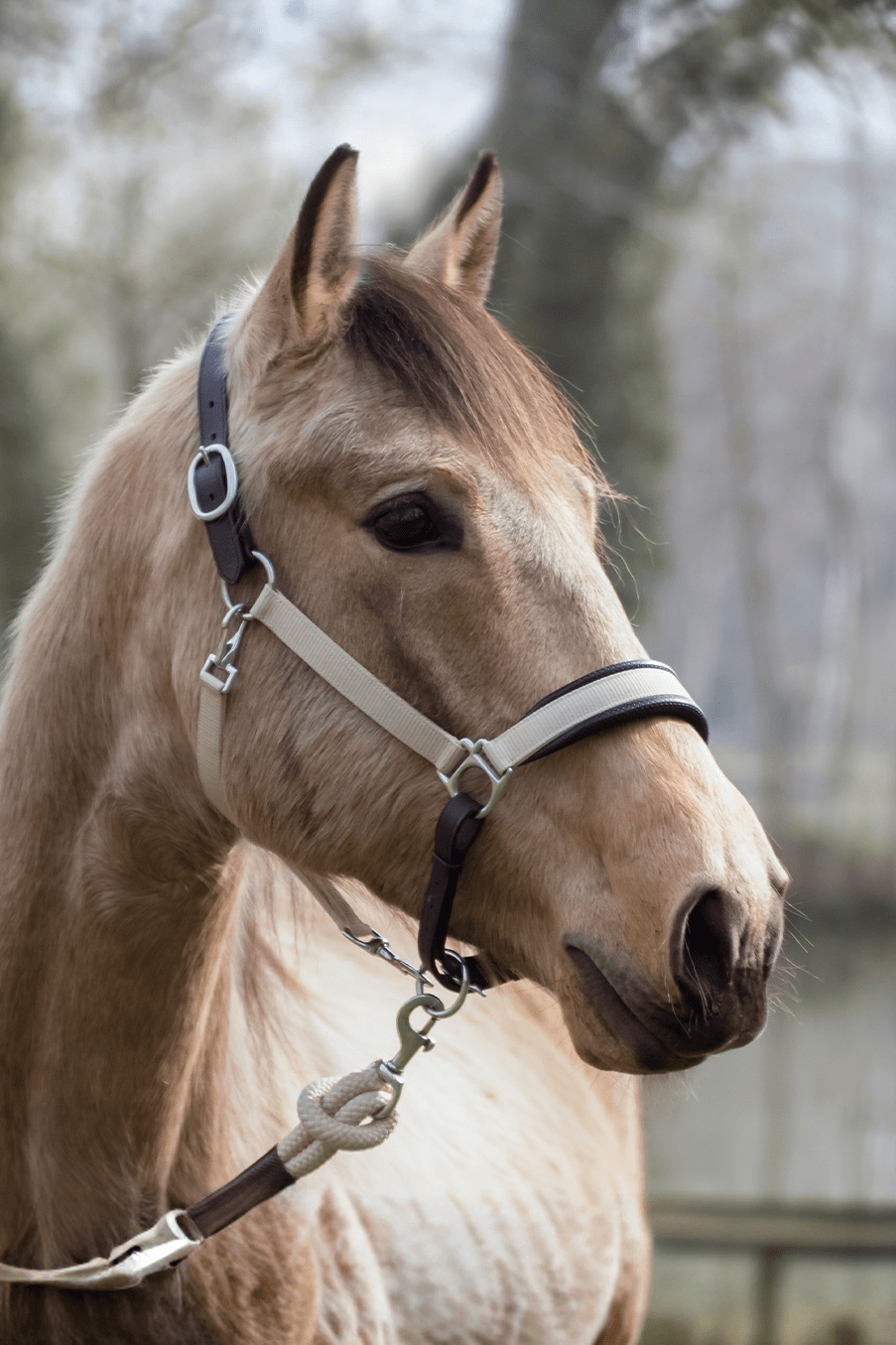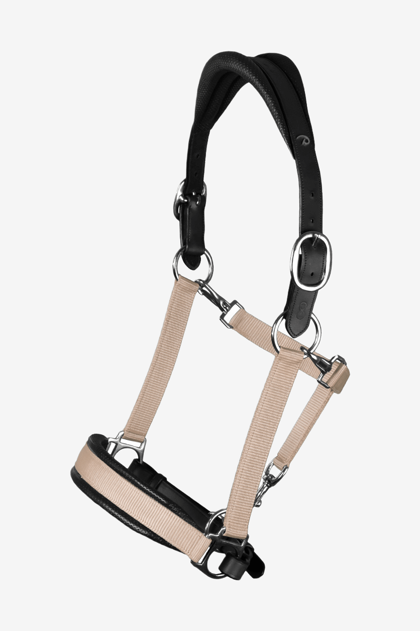 Bardzo stylowy nylonowy kantar z kolekcji La Cense marki Dyón. Kantar posiada detale z czarnej skóry bawolej oraz miękkie wypełnienie dla dodatkowego komfortu. Inteligentne rozwiązanie 2-w-1, które pozwala używać kantara jako kantara do prowadzenia lub do pielęgnacji.