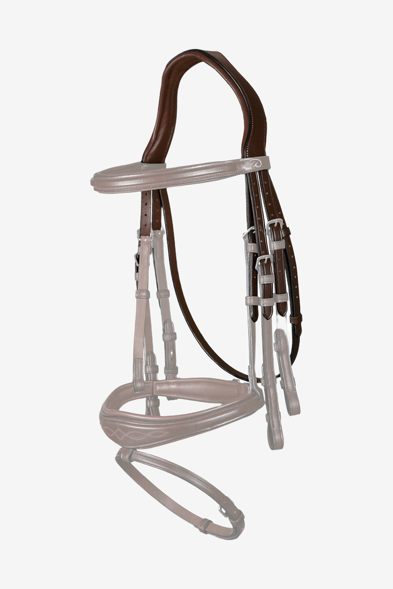 Luźna potylica do ogłowia z kolekcji Dyón New English, umożliwiająca łatwą zamianę zwykłego ogłowia w kandar.