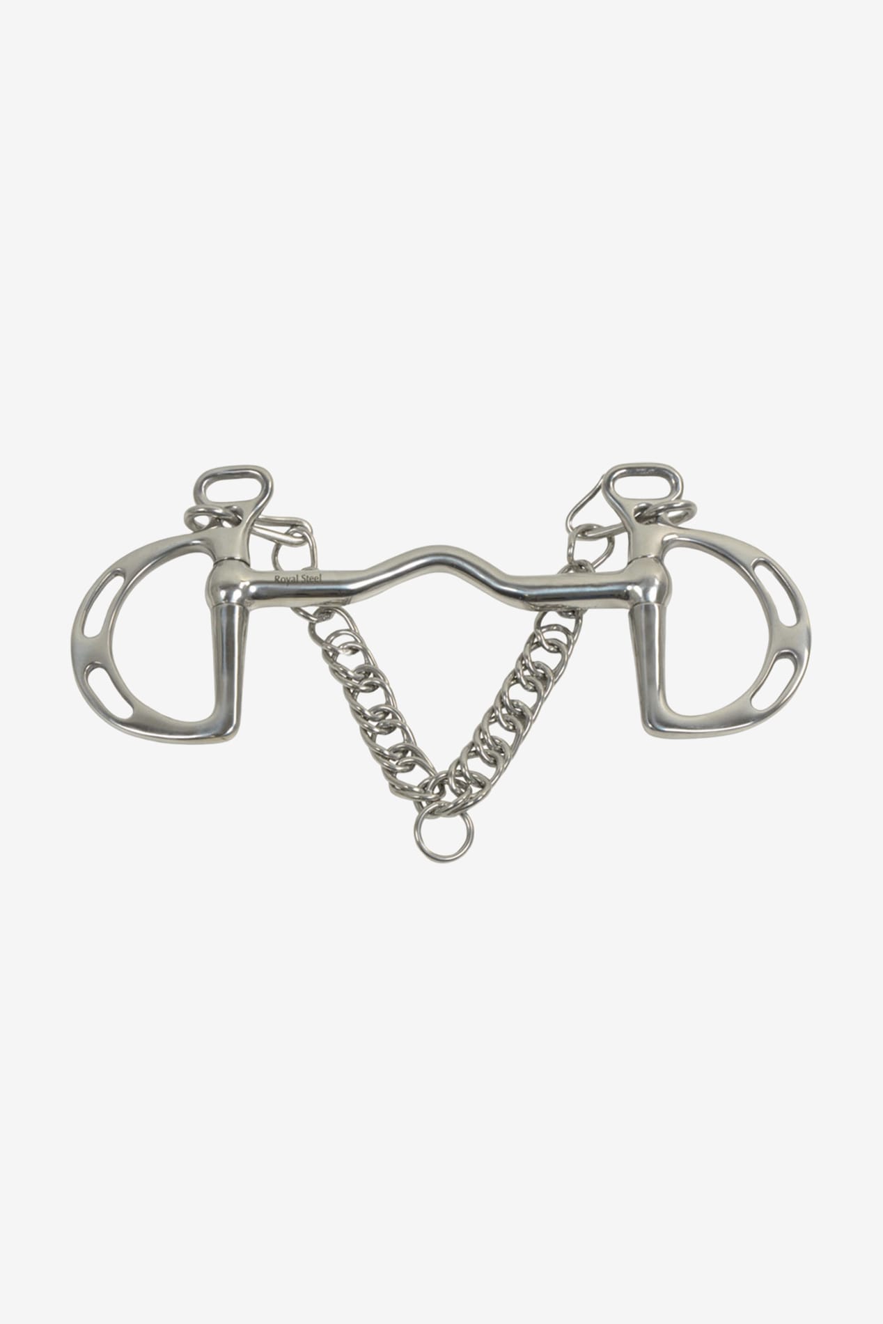Wędzidło jest wyposażone w łańcuszek podbródkowy i haczyki.