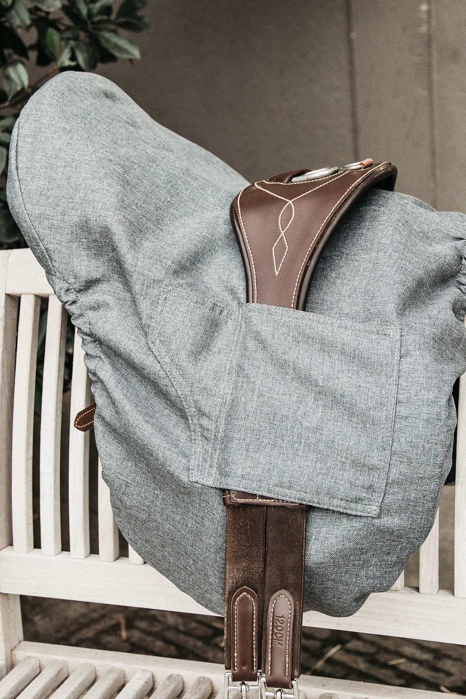 Ten pokrowiec łączy prostotę i jakość, a jednocześnie jest bardzo praktyczny. Dzięki zewnętrznym kieszeniom możesz łatwo przymocować popręg, aby zapobiec jego zsuwaniu się z siodła.