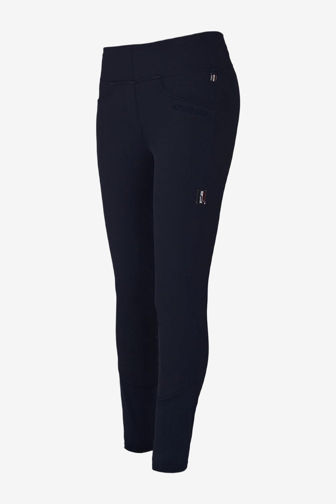 Damskie legginsy jeździeckie z pełnym lejem od Kingsland. Bez guzików i zamka – po prostu spodnie do jazdy konnej, które wystarczy wciągnąć. Szeroki pas zapewnia optymalny komfort i wsparcie.