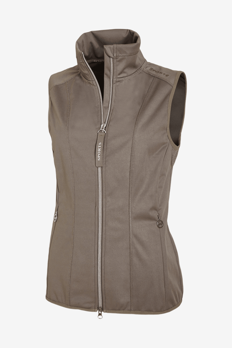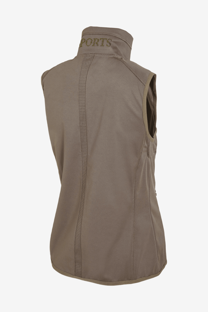 Väst från Schockemöhle. Härlig väst med kroppsnära passform. Gjord i ett softshell tyg med tvåvägs dragkedja. Fickorna framtill stängs med dragkedjor med Schockemöhles logo. Fina detaljer med strass på vänster axel samt i nacken. Mitten på ryggen samt under armarna är tyget perforerat för bra ventilation och bra stretch vilket gör västen väldigt bekväm och följsam. Tvättbar i 30 grader.