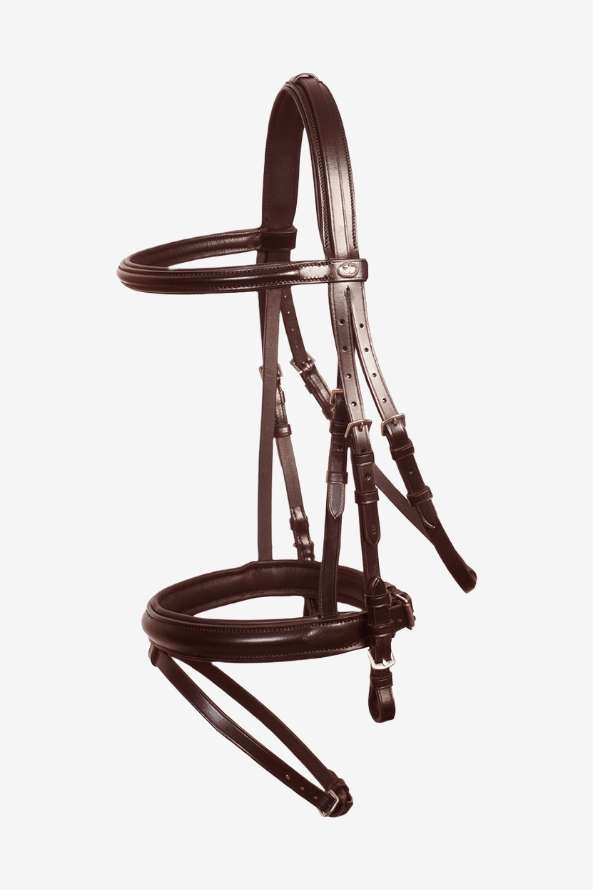 Ogłowie dla osób, które cenią sobie prosty, elegancki design. Miękka i elastyczna skóra z miękko wyściełanym nachrapnikiem i paskiem potylicznym w prostym kroju. Odczepiany pasek na nos, jeśli wolisz jeździć bez niego. Srebrne sprzączki.
