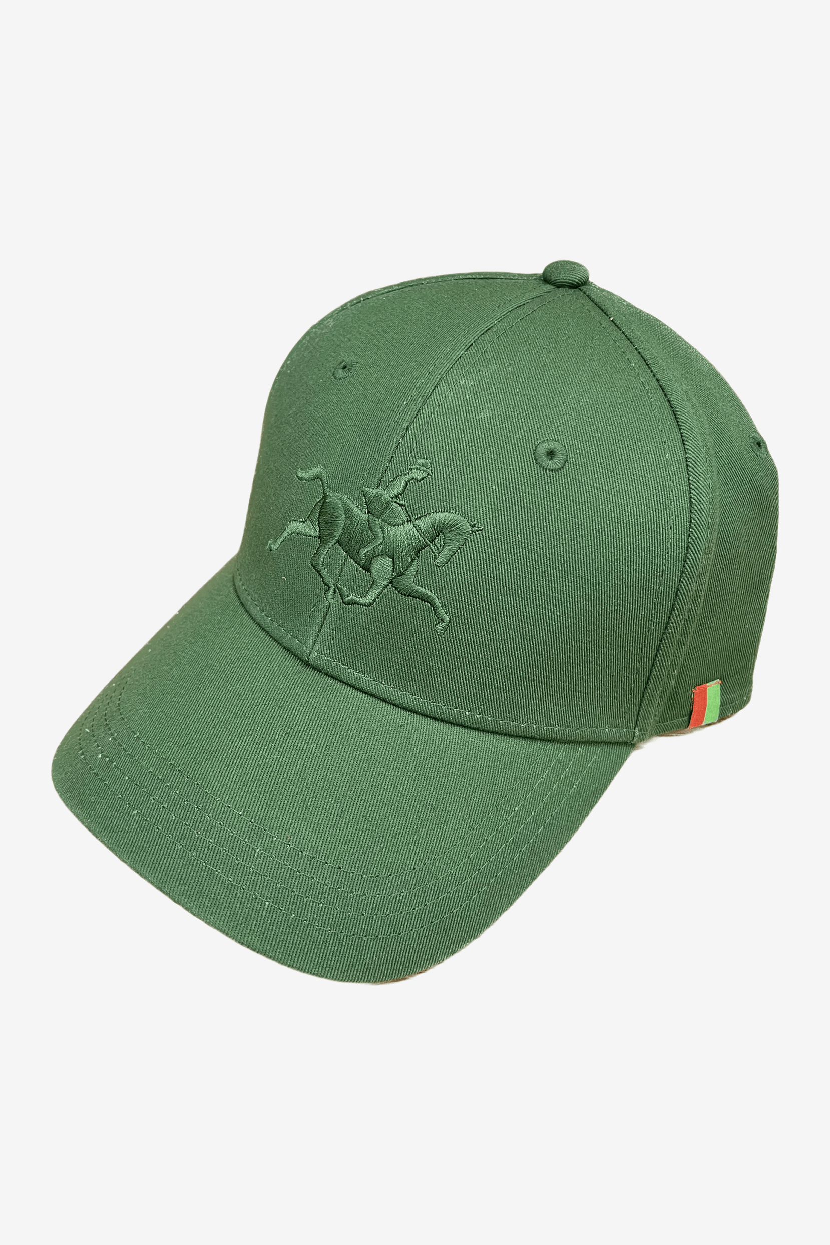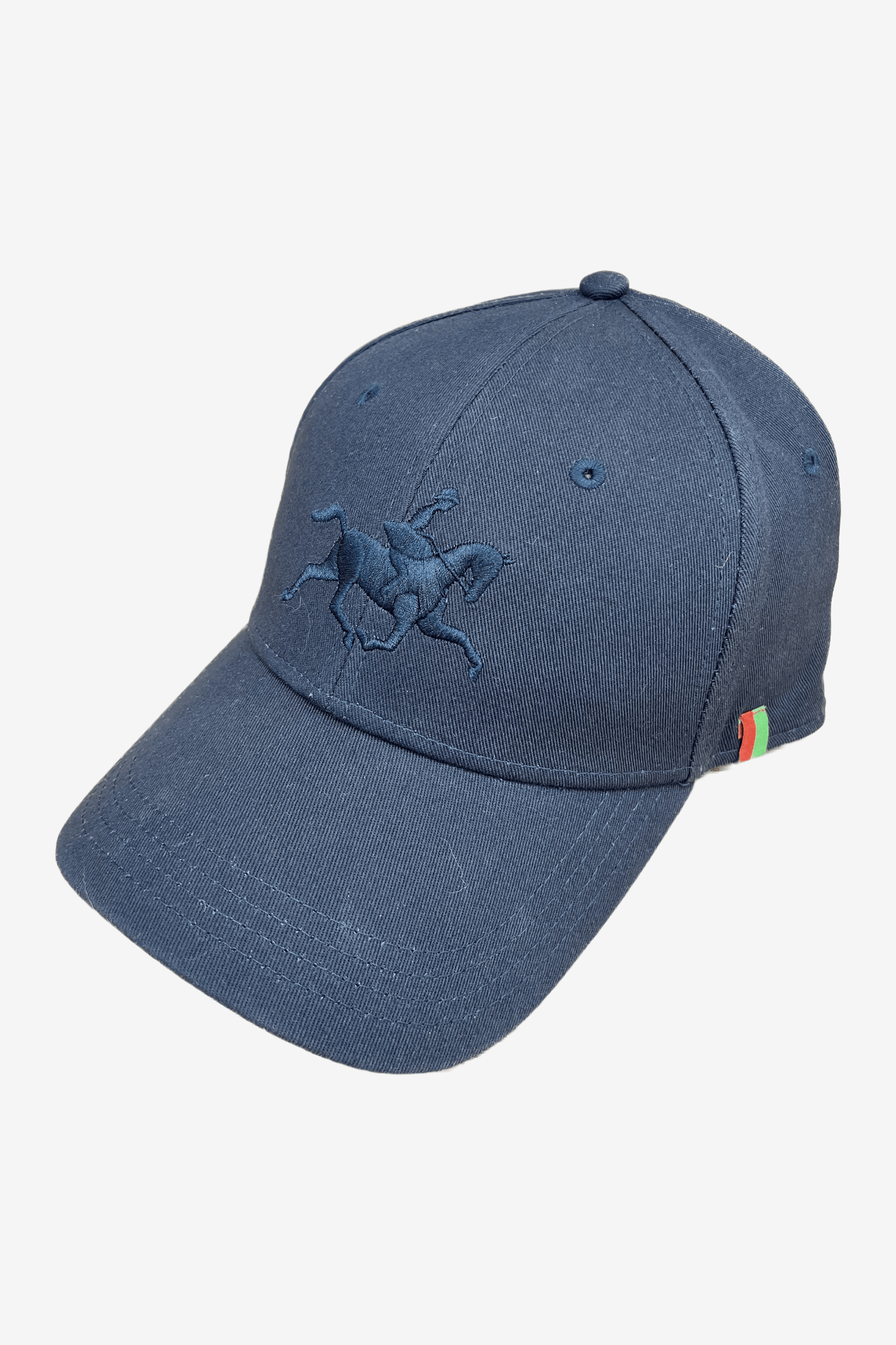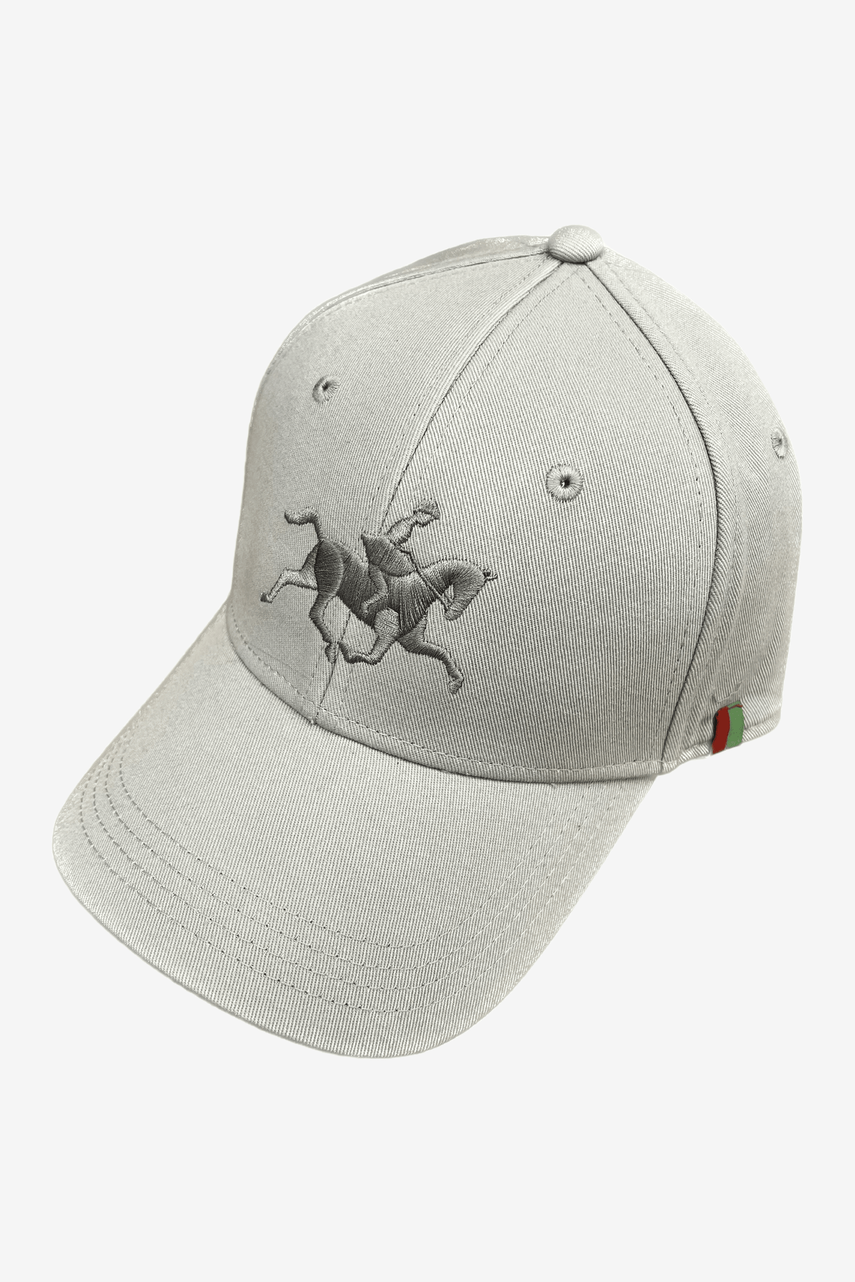 Stylowa czapka z daszkiem z wyszytym z przodu, ton w ton, koniem szwedzkiej jazdy konnej. Regulowana z tyłu za pomocą klapki, która ukrywa nadmiar paska.