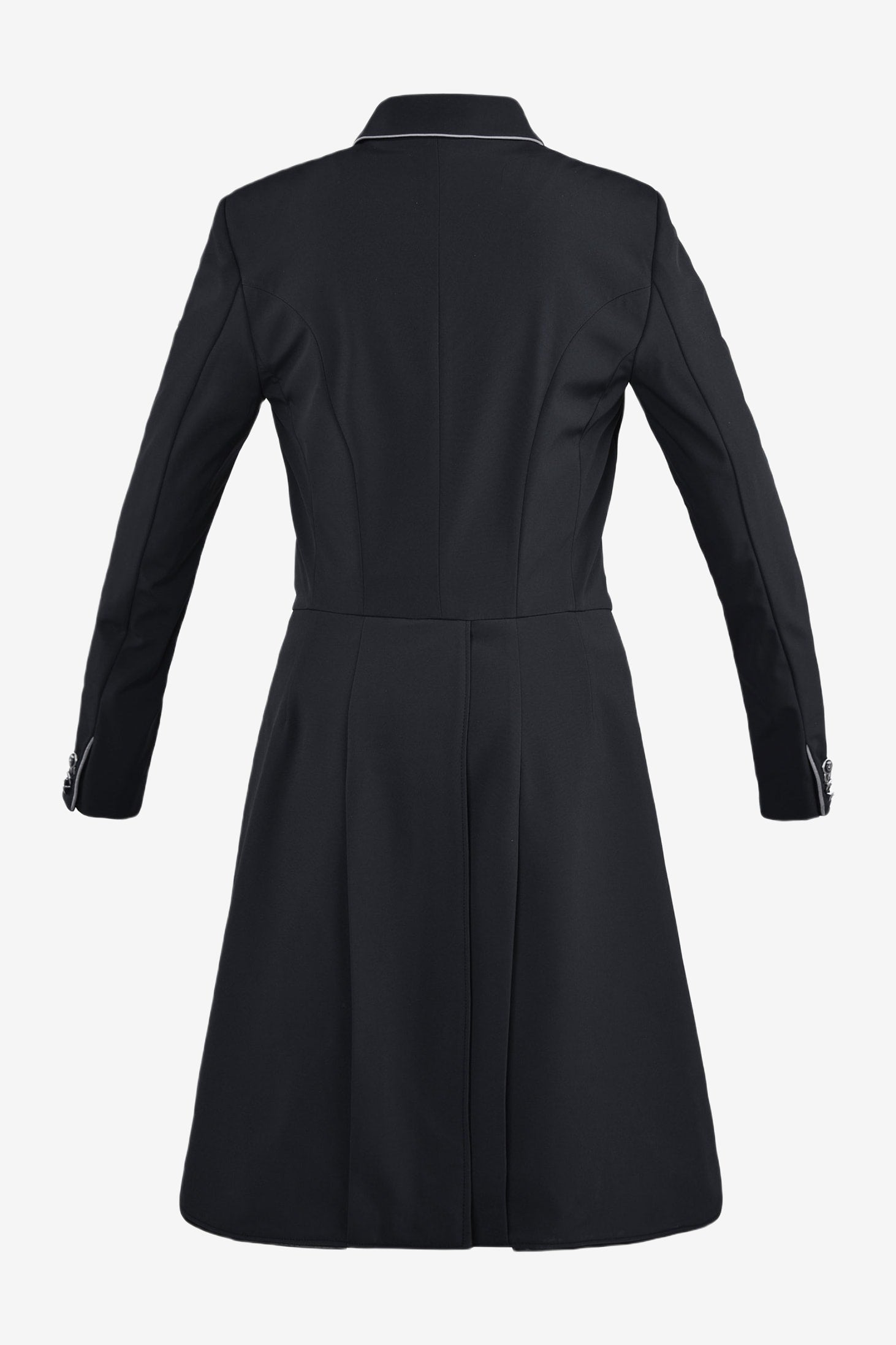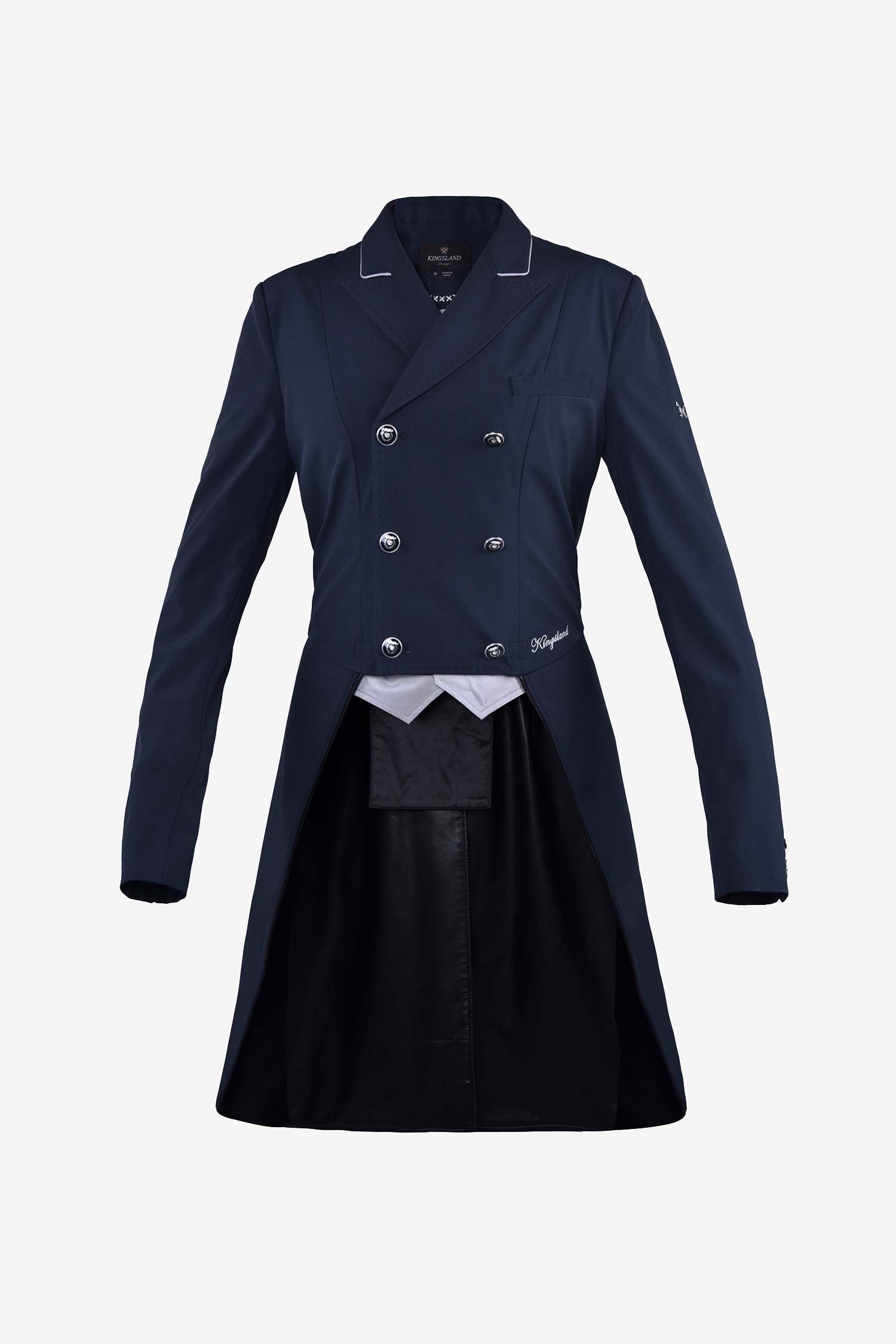 Elastisch und anschmiegsam mit femininer Passform. Gesticktes Logo auf der rechten Tasche. Silberfarbene Paspelierung am Kragen. Abnehmbare silberne Laschen vorne. Zweireihig geknöpft mit Logo-Knöpfen.