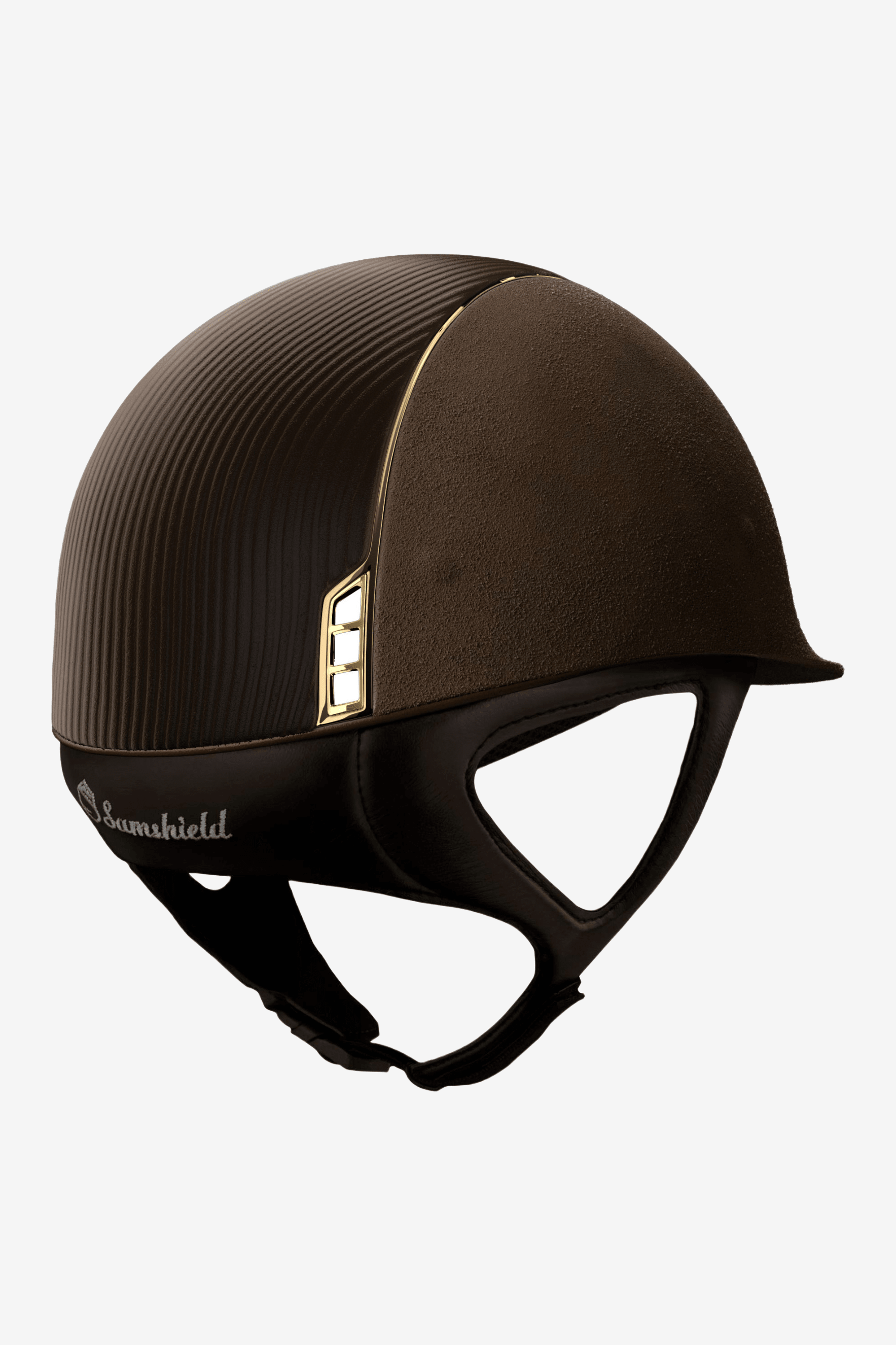 Premium-Helm mit Leather Top, goldener Zierleiste und Blason sowie Dressage Cut.