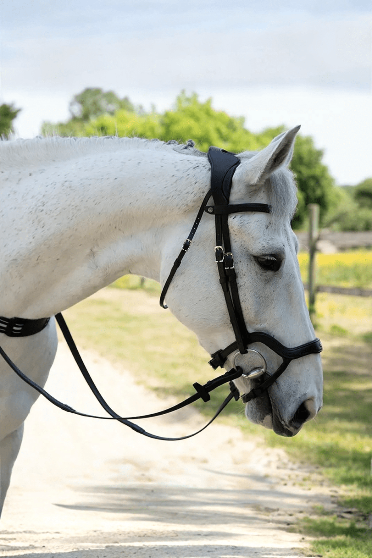 Antares träns med "Precision" nackstycke och Y nosgrimma gjort på franskt läder.