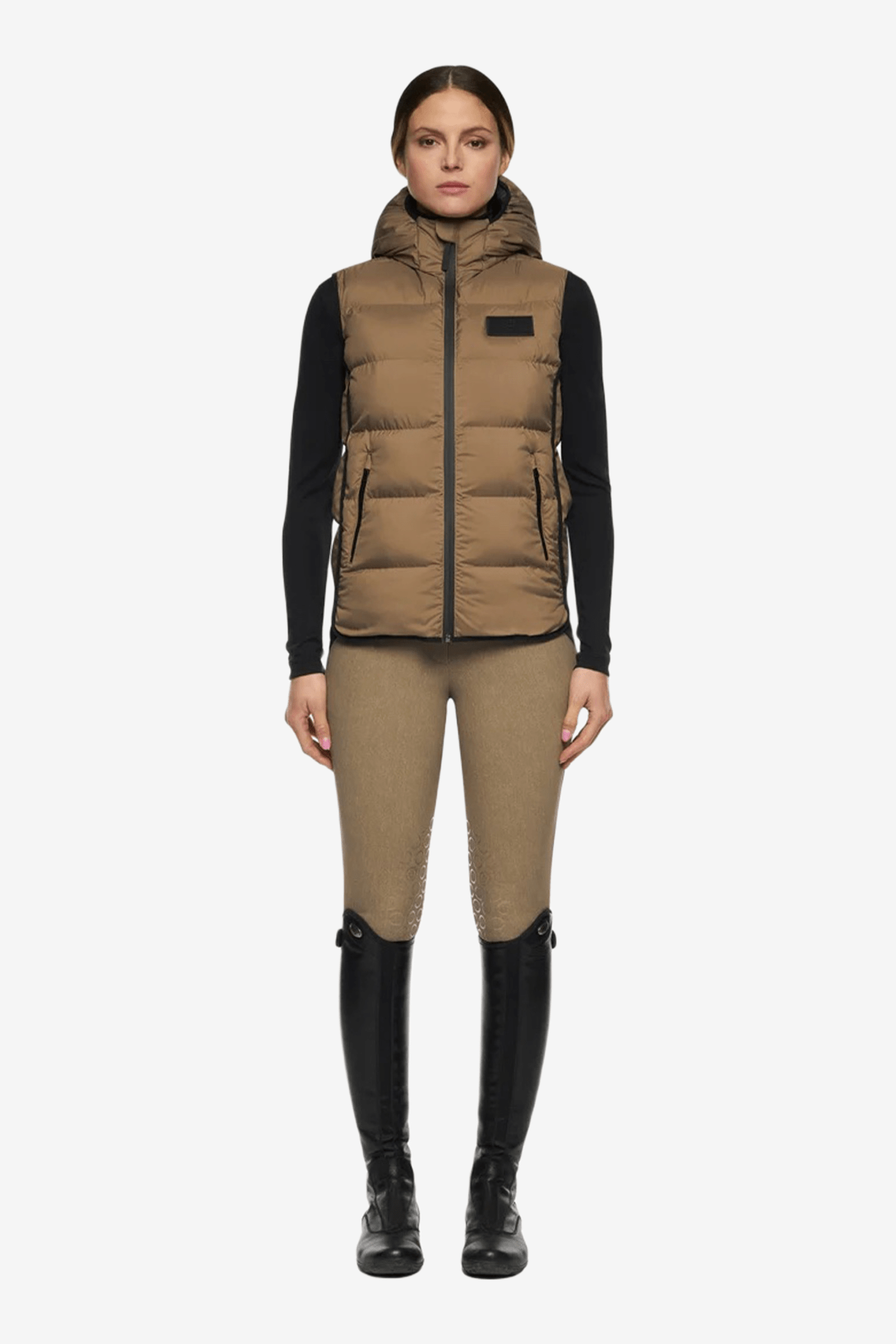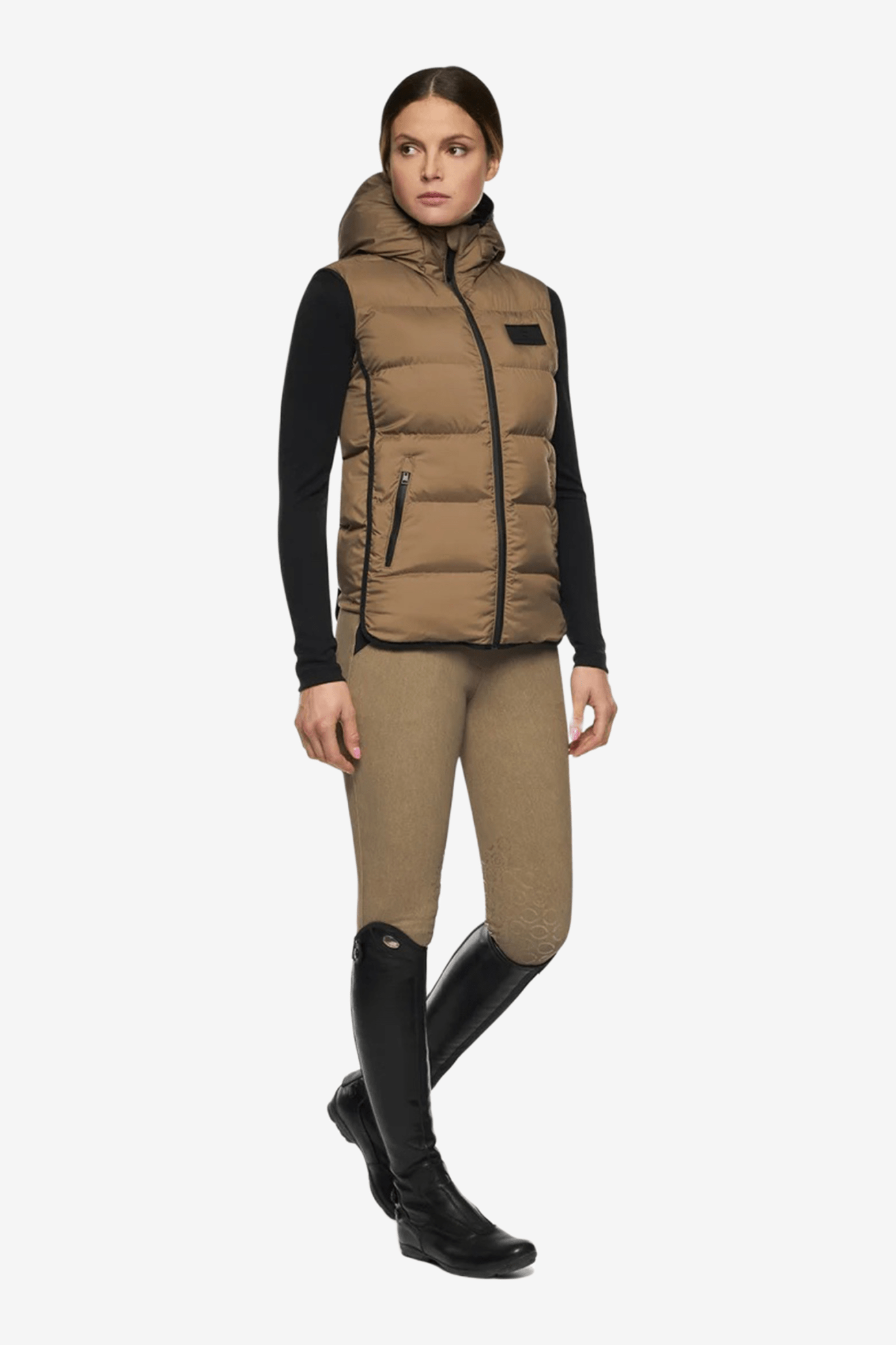 En av nyheterna från vinterkollektion ifrån Cavalleria Toscana 2022. Denna sköna, mjuka och lätta väst blir din nya följeslagare i vinter. Fodrad med polyester vilket gör den så himla lätt att bära. Snygga detaljer med Cavalleria Toscana logo detaljer på bröst samt ärmkant. Förlängd framtill och baktill för lite extra värme. Vilket gör den lite längre i modellen. Huvan är inte avtagbar. Normal i storlek. Är du mellan två storlekar, ta den större.