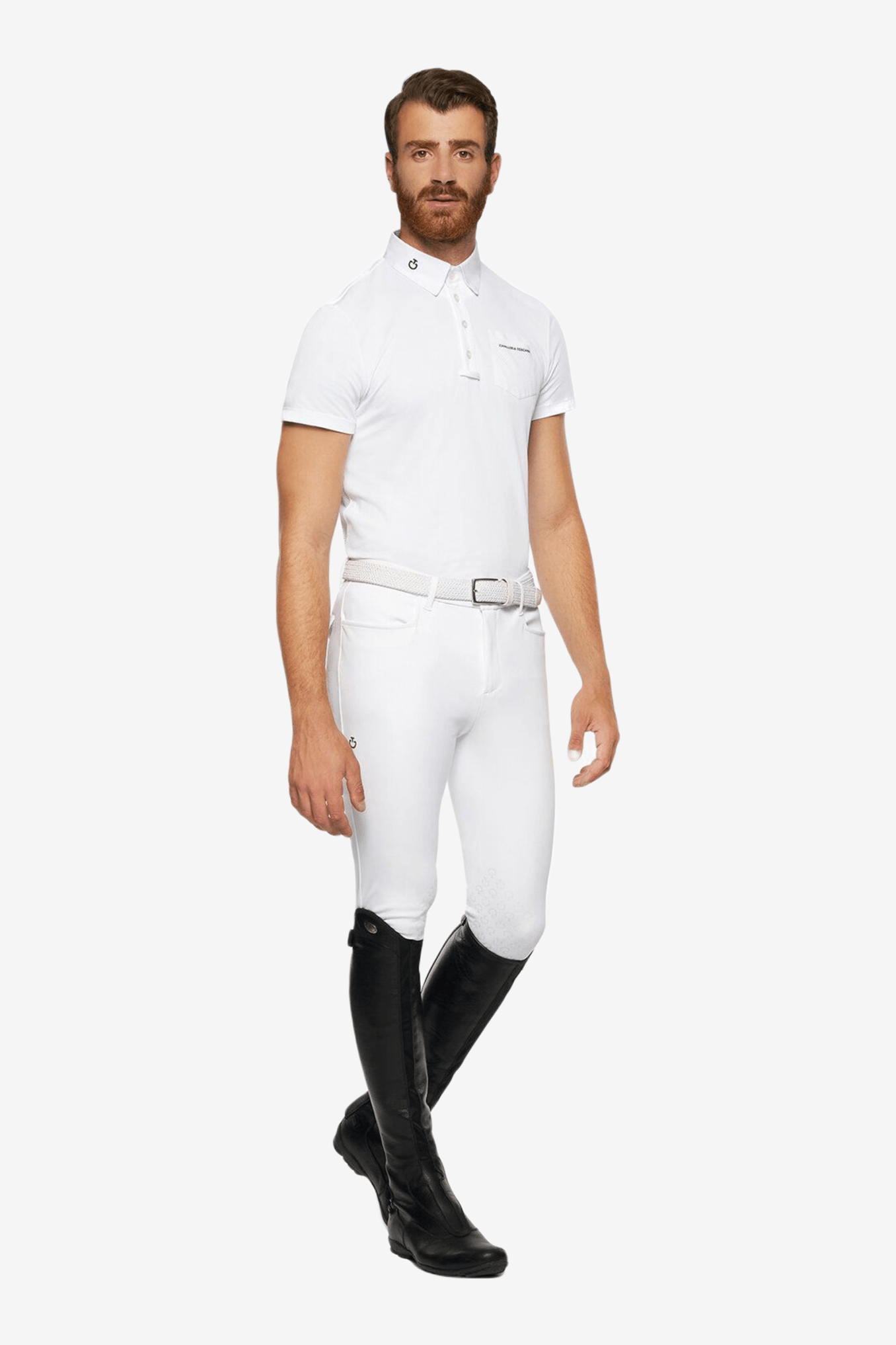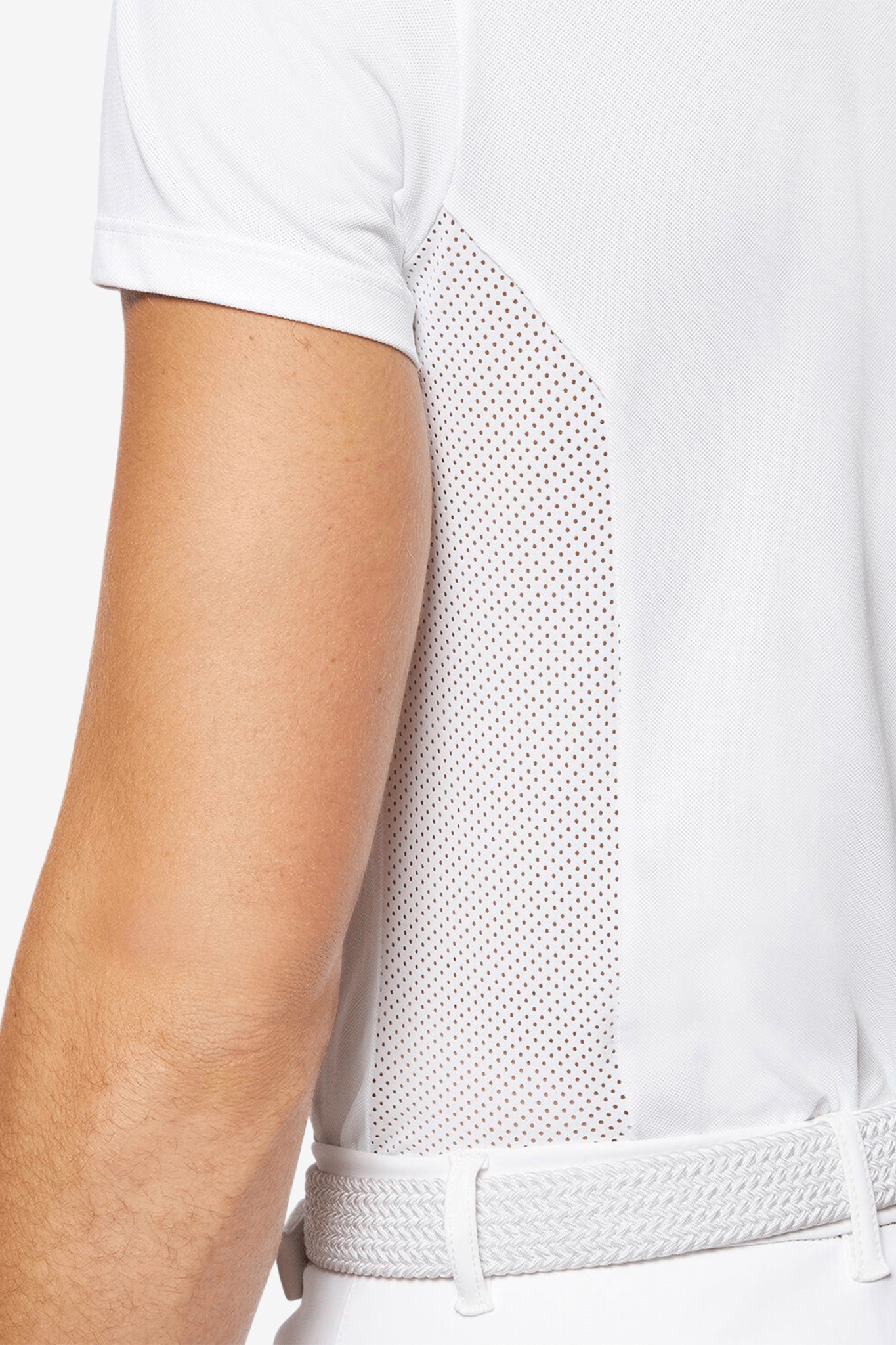 Det andningsaktiva pique-stickade tekniska tyget har en smal passform och är elegant trimmad med mesh-paneler i sidorna samt en bröstficka i perforerat tyg.