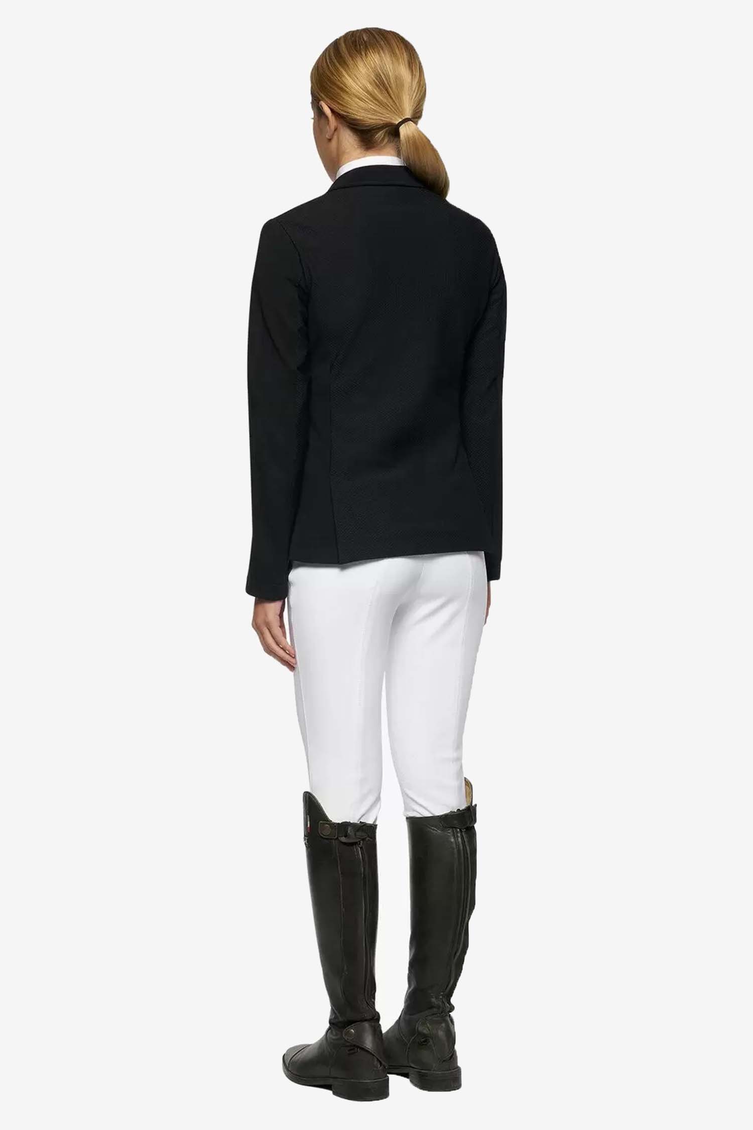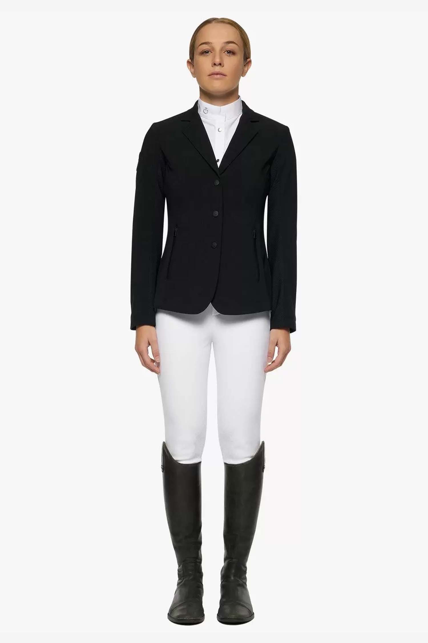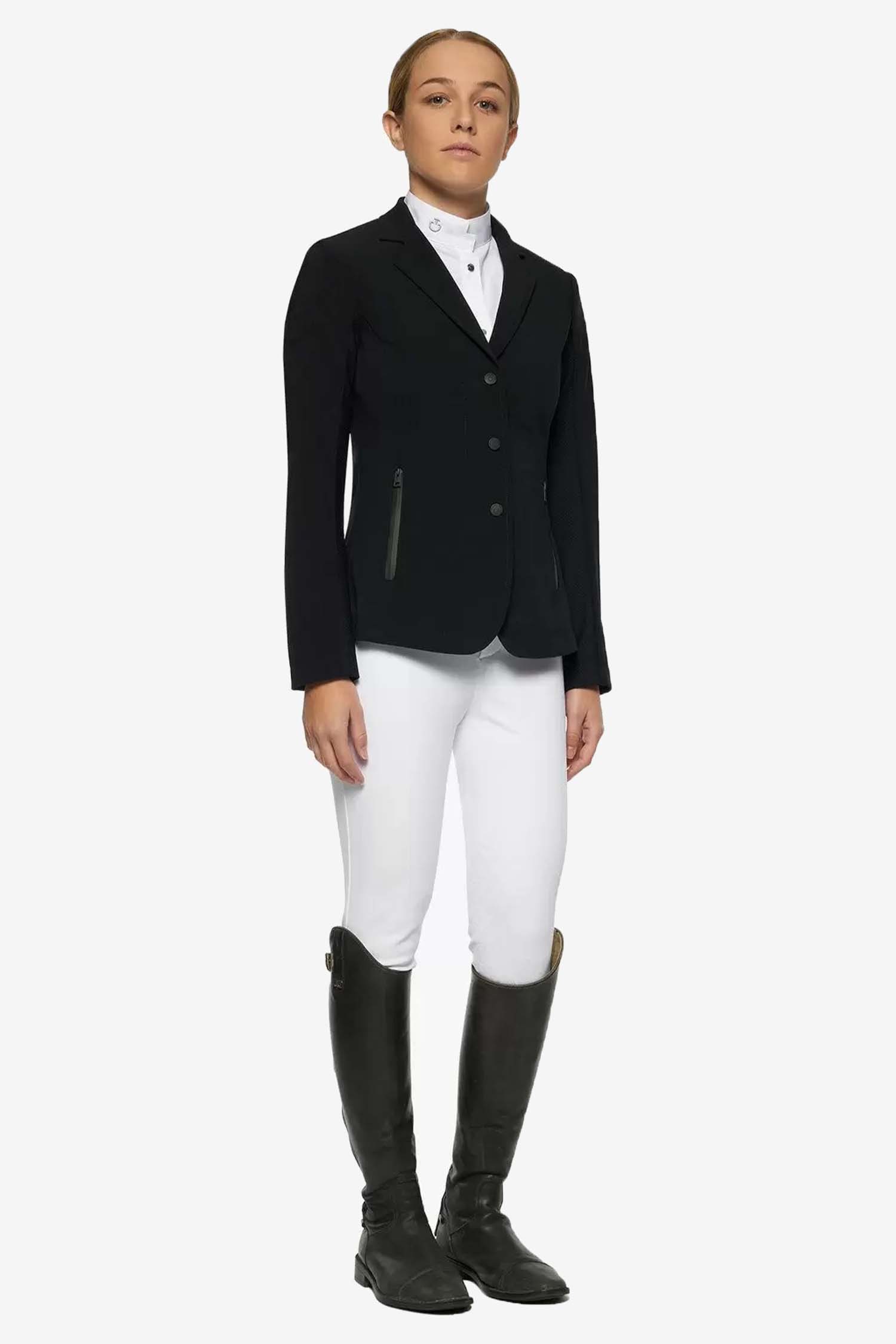 Snygg tävlingskavaj från Cavalleria Toscana för barn. Gjord av ett bi-stretch material med enkel knäppning, fickor framtill som stängs med dragkedja.