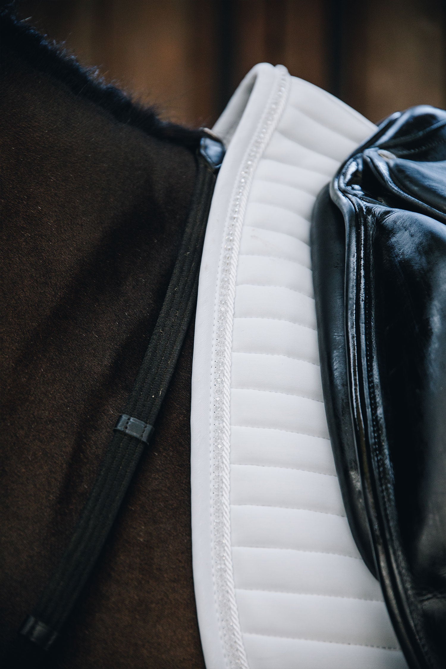 Detaljerad med vackra stenar och pärlor som gnistrar sådär helt perfekt. Hela schabraket är gjort av material som andas och håller din häst torr under ridpasset. Kentucky logga snyggt placerad som en extra lyxig detalj på schabraket.