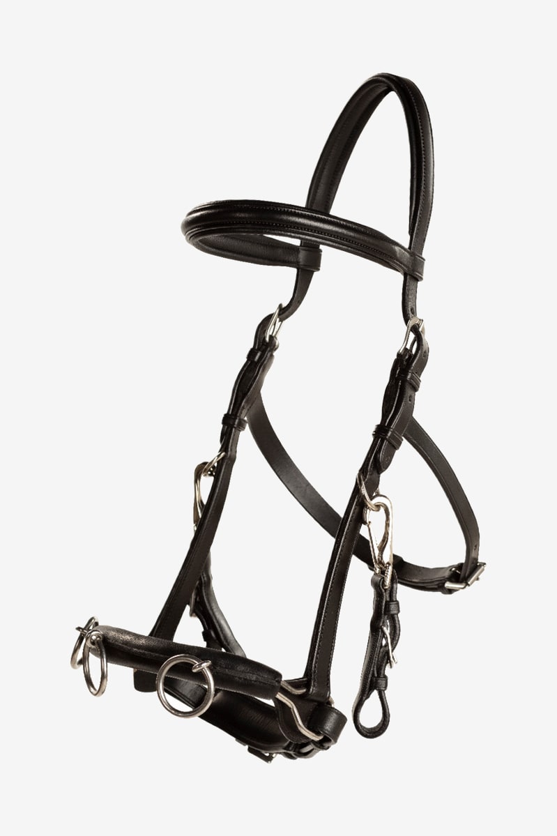 Lippos kapson är med en mjukt fodrad nacke och pannband. Tillverkad i vegetabiliskt garvat amerikanskt läder. Rundsydd nosgrimma utan järn som är snällare mot hästen, med tre ringar för fäste av longerlina. Avtagbara fästen för bett och rostfria beslag.