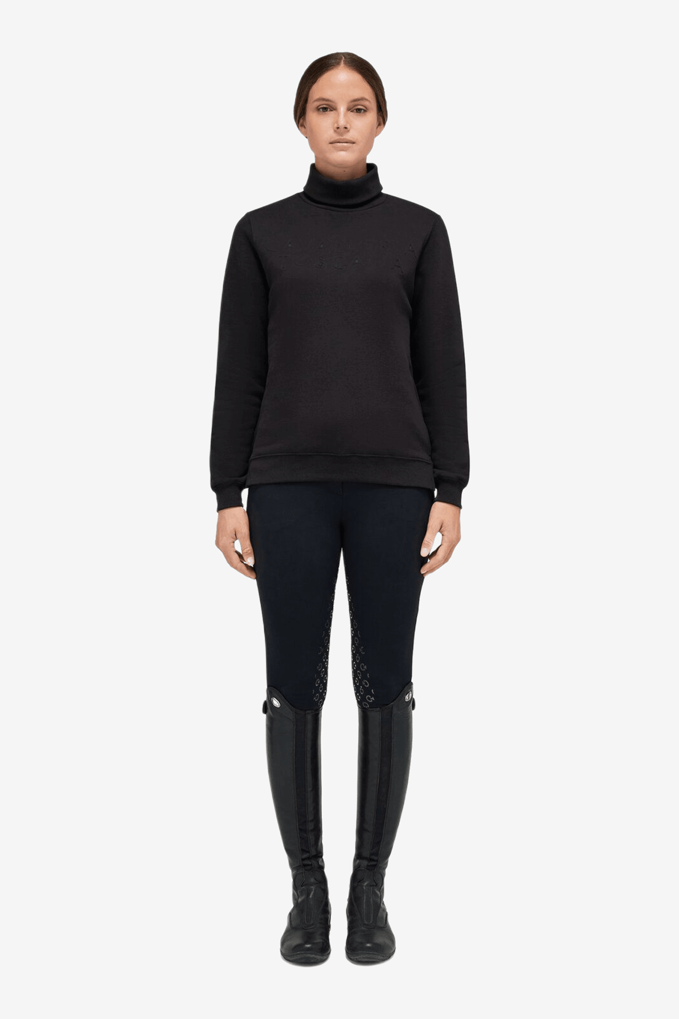 Skön tröja från Cavalleria Toscana gjord av fantastisk bomull av högsta kvalitét. Passar lika bra till ridning som till vardagen. Sofistikerad feminin look, tillsammans med en turtleneck, snygga slitsar i sidorna och en längre baksida för maximal rörelsefrihet. Snyggt designad med Cavalleria Toscana brodyr på bröstet samt deras logo baktill.