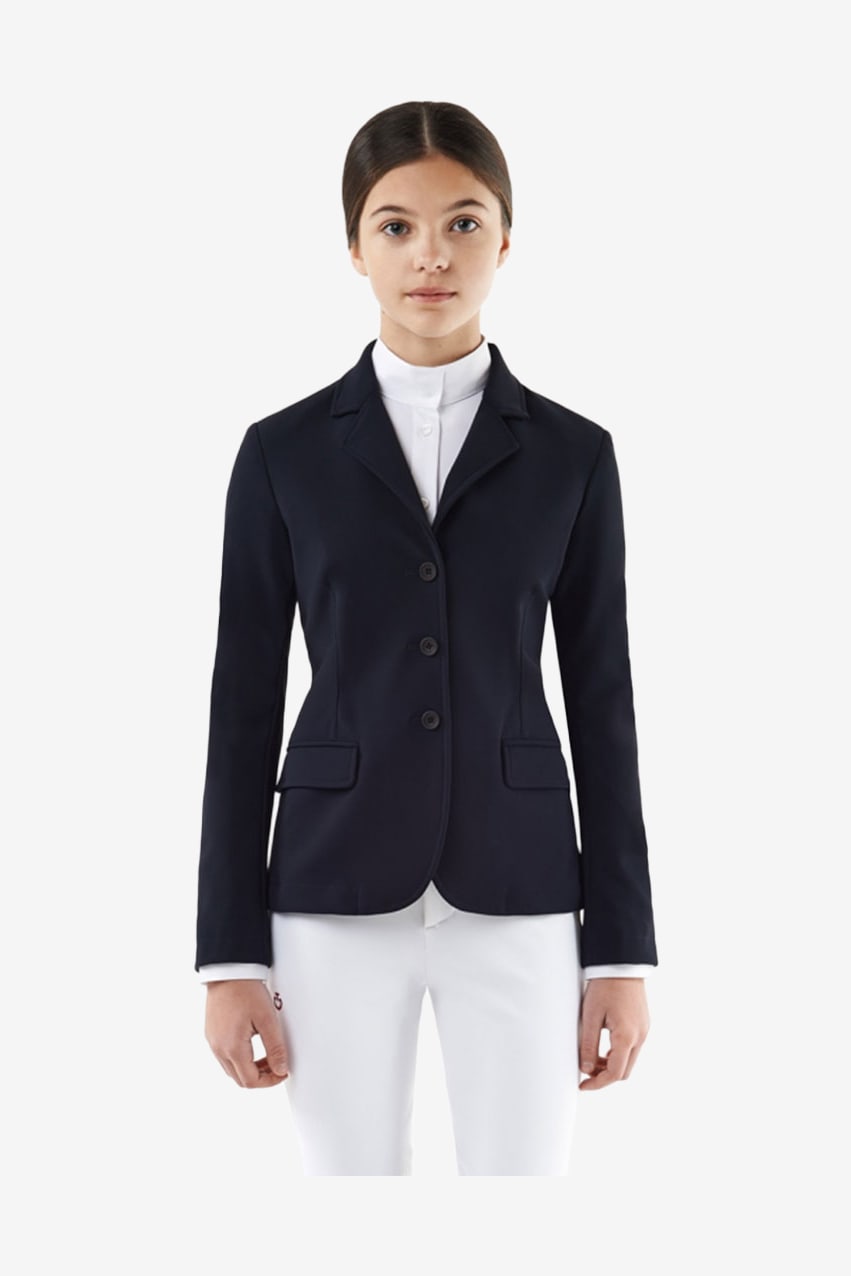 Snygg och trendig tävlingskavaj i juniormodell med alcantarakrage från Cavalleria Toscana.
