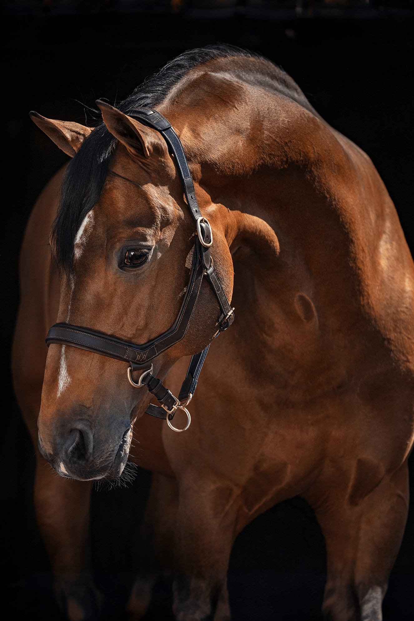 Lädergrimman är extra utformat för hästens välbefinnande och ger inga tryck på känsliga nervbanor. Tillverkat i miljövänligt läder, fodrad nos- och nackstycke för extra komfort.