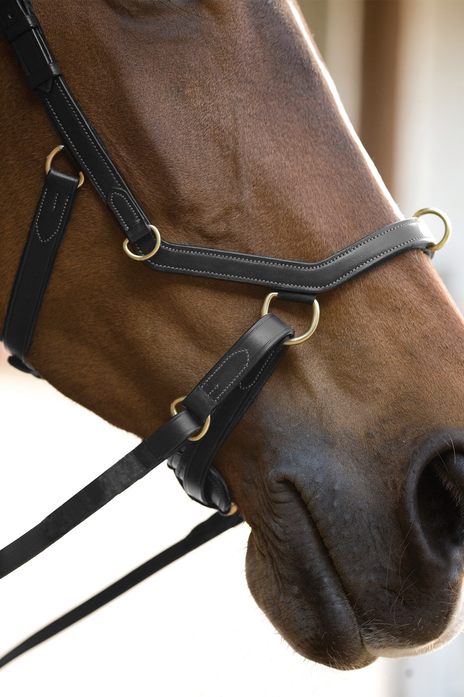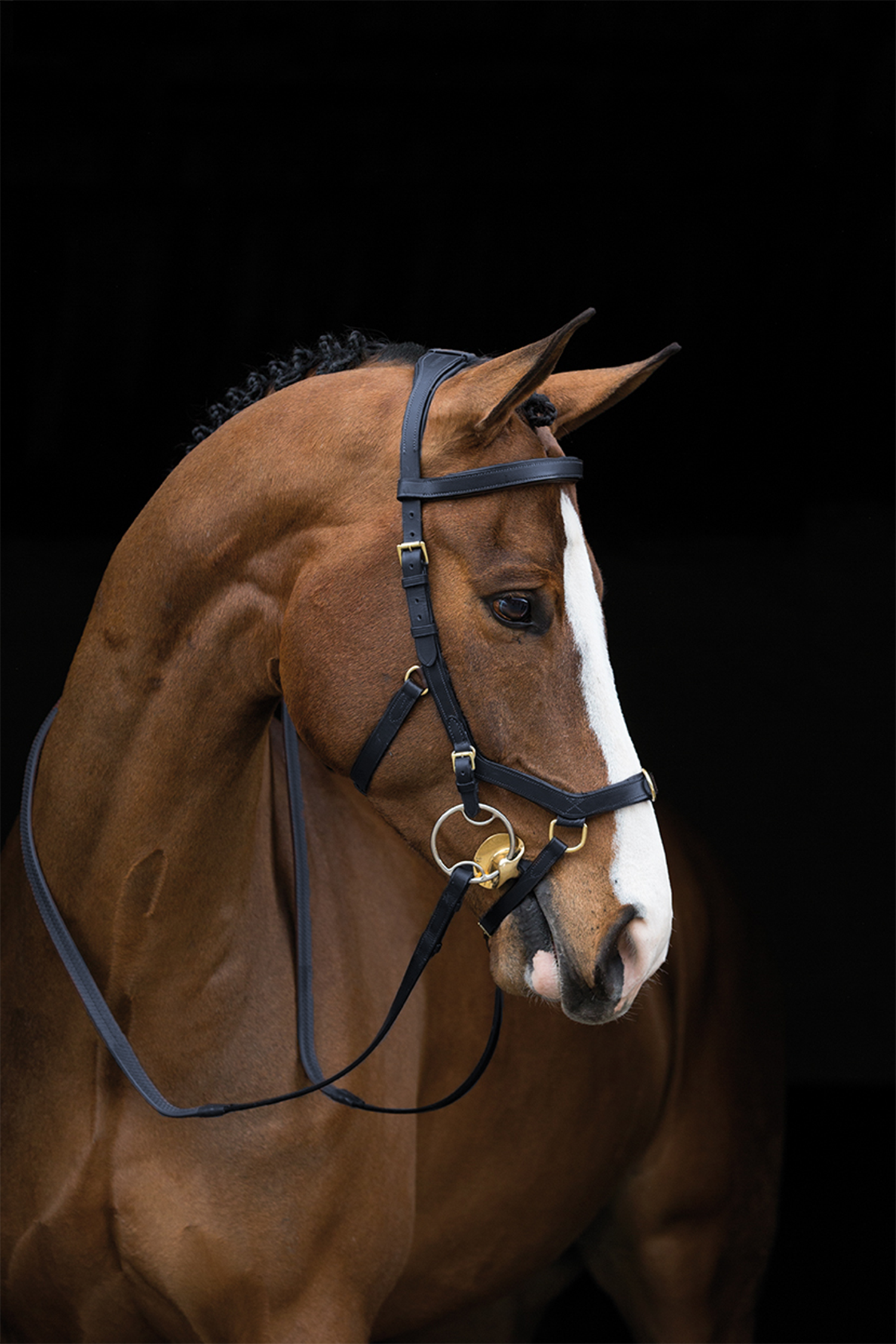 Tävlingsträns som är väldigt populärt. Utformat för hästen välbefinnande och ger inga tryck på känsliga nervbanor eller i hästens framträdande molartäner i ovankäken. Tillverkat i miljövänligt läder, fodrad nos- och pannband samt nackstycke.