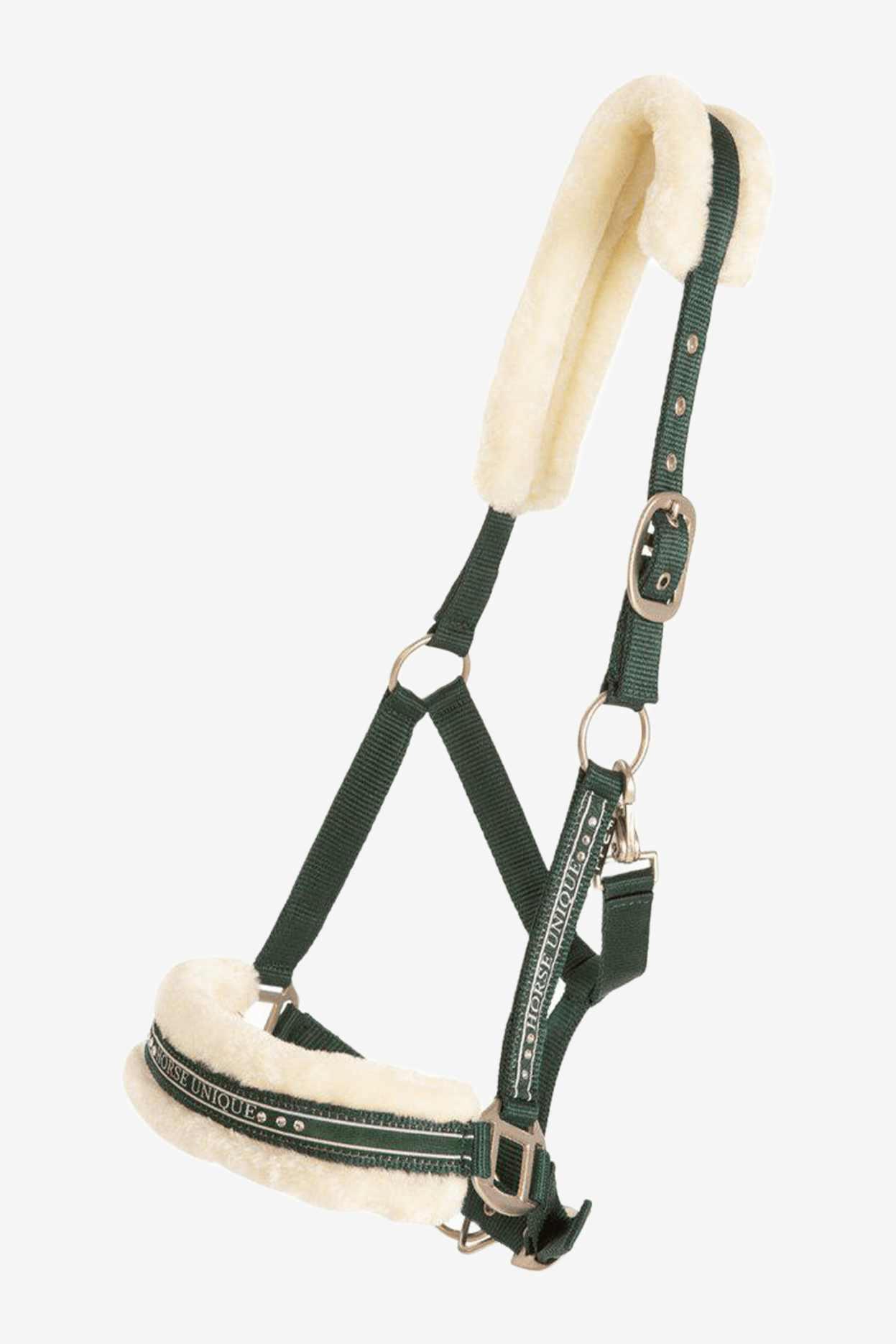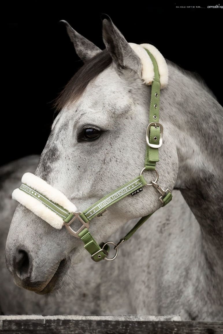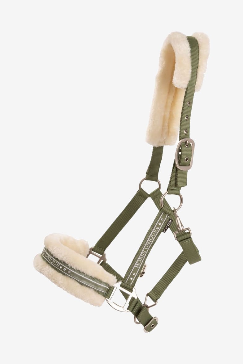 Grimma i läcker färg med mjuk päls vid nos och nacke som förhindrar skav. Stenar på sidorna och nosen. Storleken går enkelt att justera vid nack- och nosrem med spännen i matt silver.
