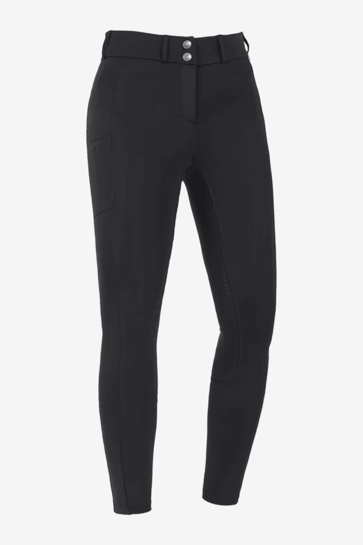 Ridbyxor Kaya från KLkaya är designade med högmidja och ett brett midjeband för ökad komfort och flexibilitet i sadeln. Tillverkade i ulltrasträckt stickat tyg för optimal passform. Ridbyxorna har tryckknappar i fram och en praktisk mobilficka på höger ben.