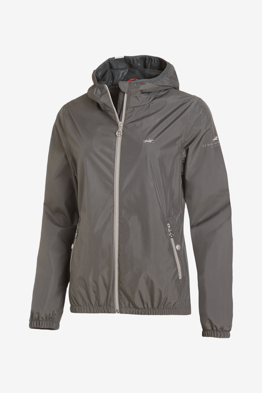 Sportig damjacka Lolita från Schockemöhle som är vattentät och andas väl med tejpade sömmar och en huva. Skyddar väl mot väder och vind men är fortfarande väldigt lätt och bekväm att bära. Fickor fram som stängs med dragkedjor. Ärmslutet har en 2,5cm bred elastisk mudd. Reflex logo på bröstet och vänstra armen.